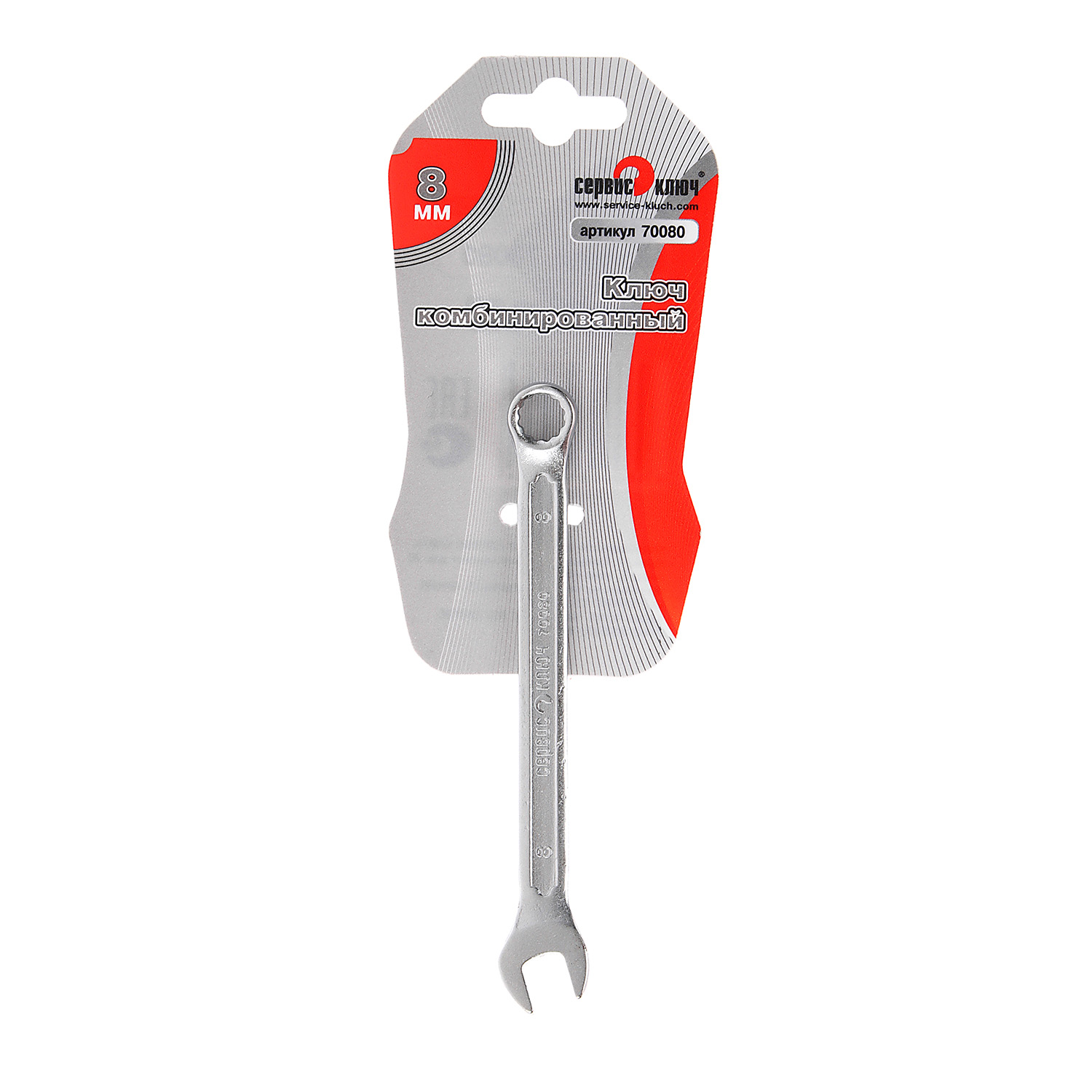 Ключ комбинированный 8мм холодный штамп CrV (70080) СЕРВИС КЛЮЧ *1/20