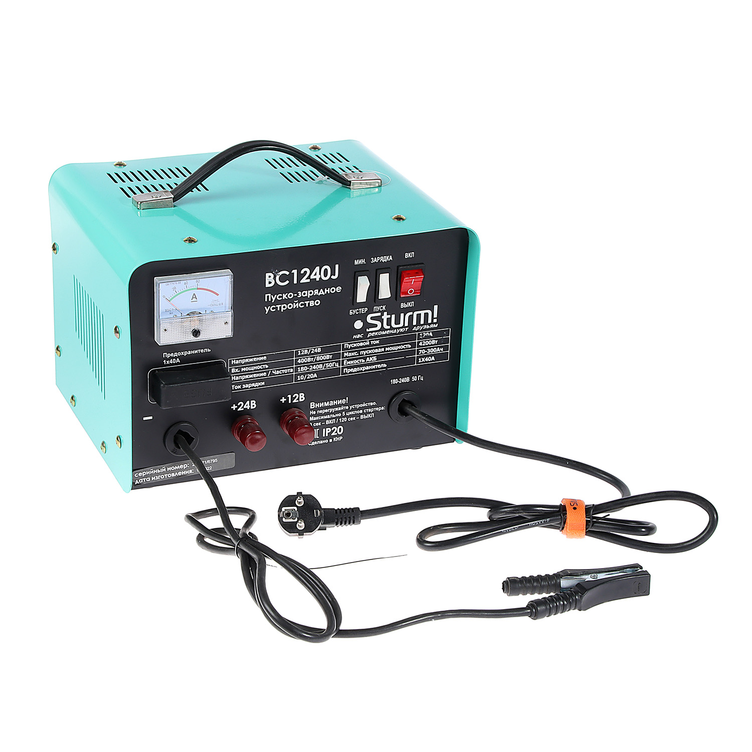 Устройство пускозарядное 220В 12В/24В 4200Вт 10/20А пуск.ток 120А до 300Ач BC1240J Sturm! *1