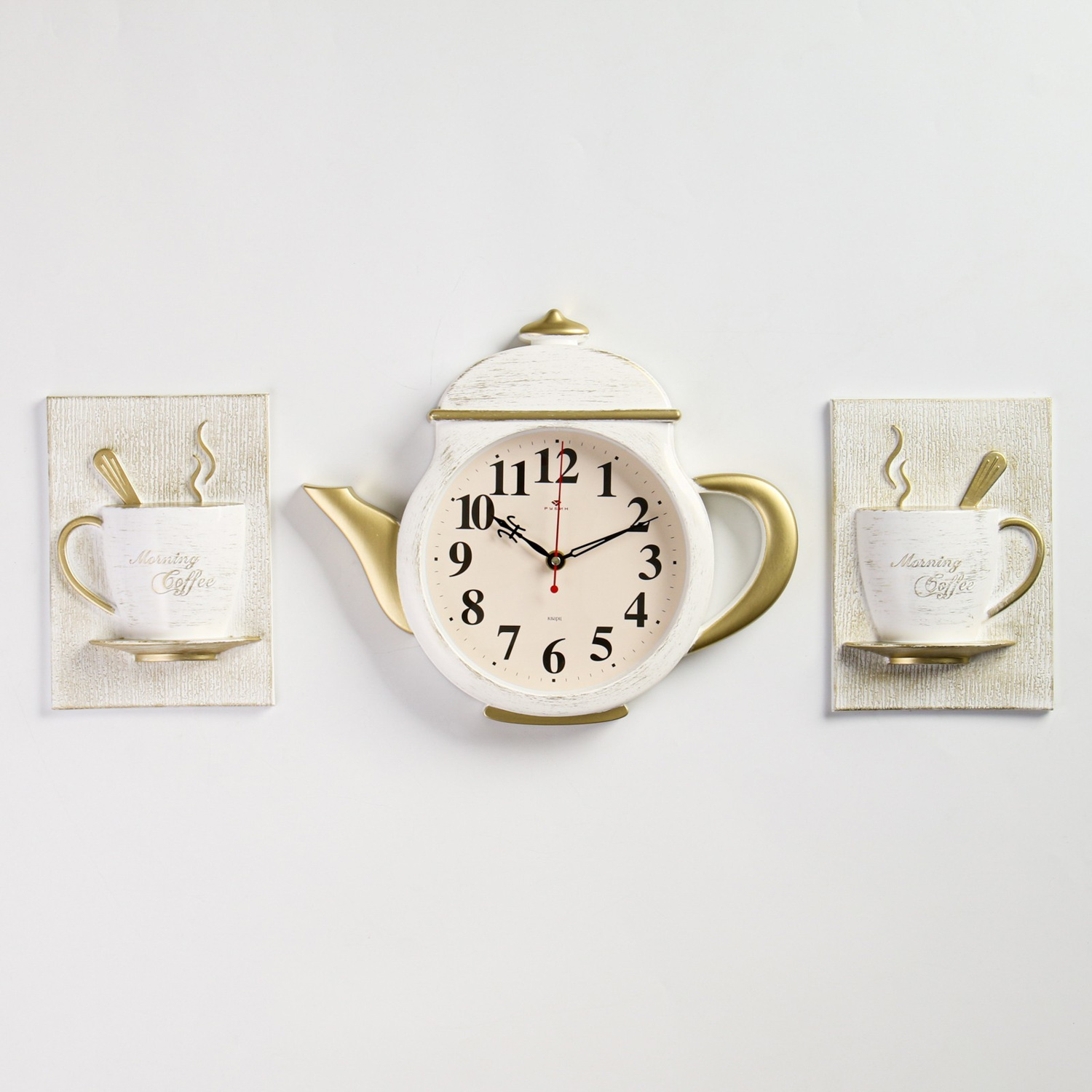 Часы настенные "Чайник и две чашки", корпус белый с золотом, 29х34см 5171025