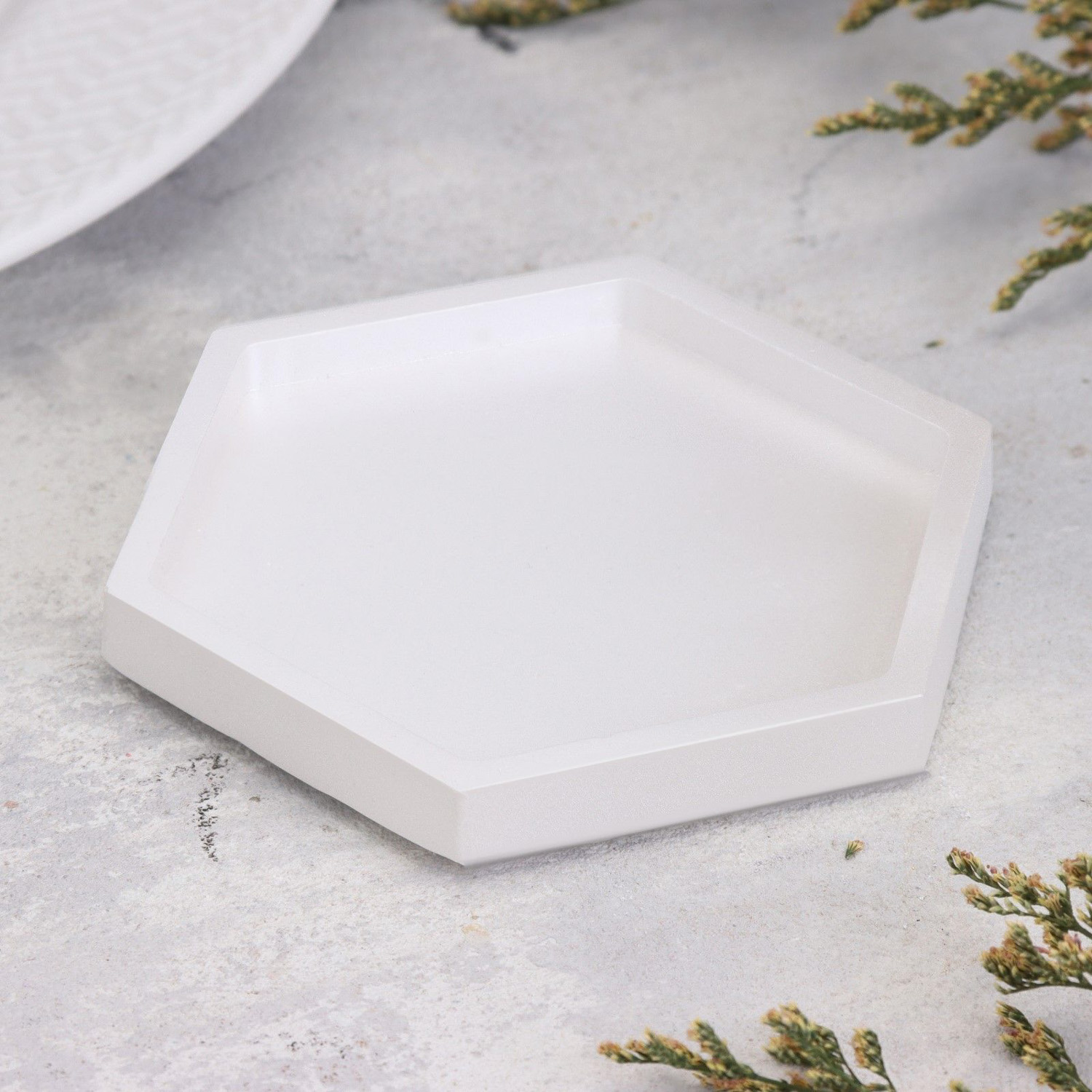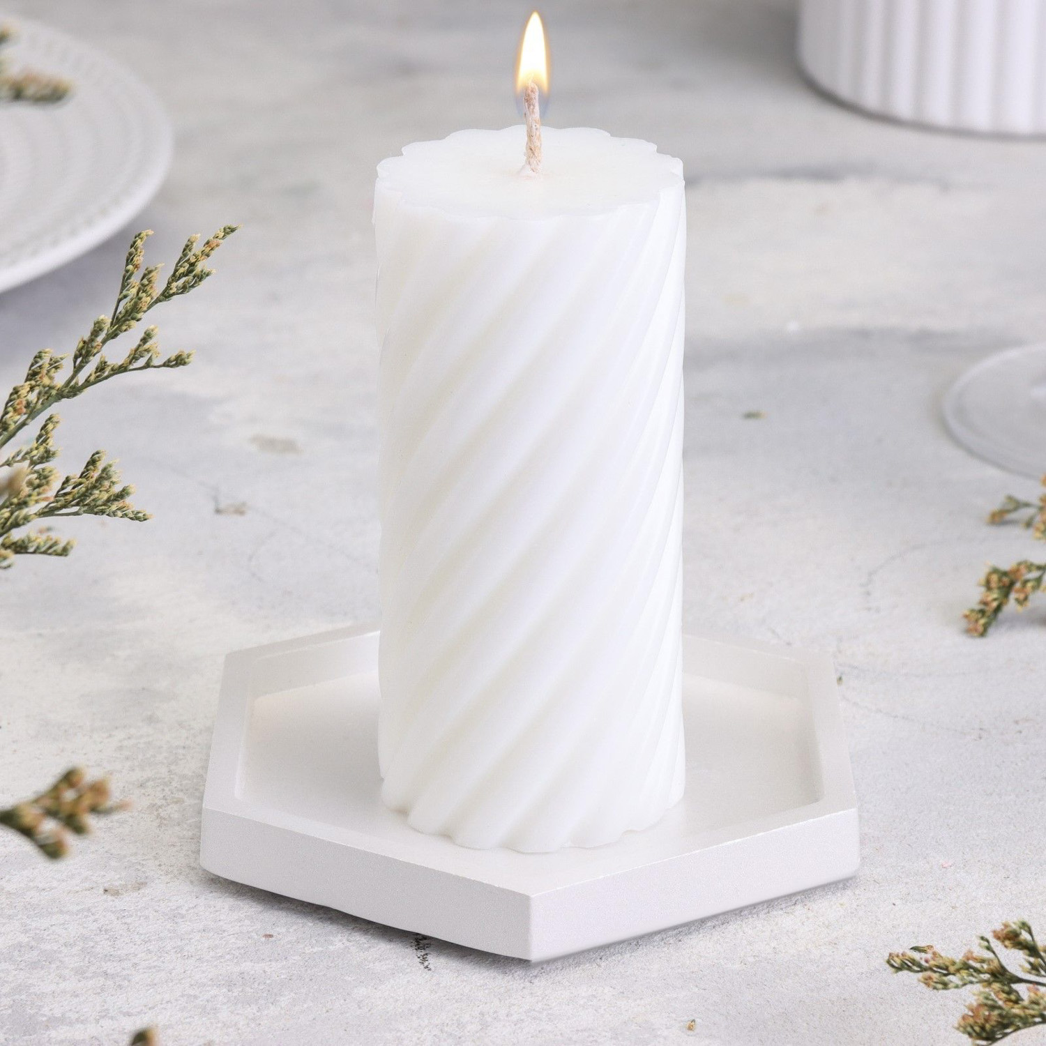 Подсвечник "Шестигранник. Мрамор" из гипса,9,7х11,3х1см,белый перламутр 10059858
