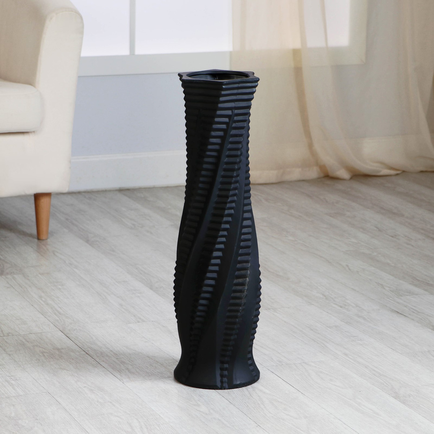 Ваза керамика напольная "Линнет" винт, d-12 см 16х60 см, чёрный 9750461