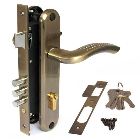 Замок врезной 85мм бронза, Ал.ручка,3 ригеля 2227/60-AB Апекс *1/20