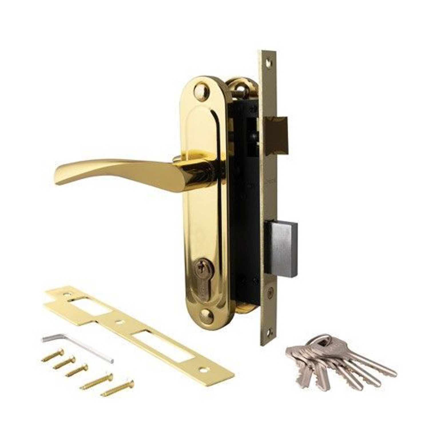 Замок врезной 70мм золото, Ал.ручки,плоский ригель 1223/60-G Апекс *1/20