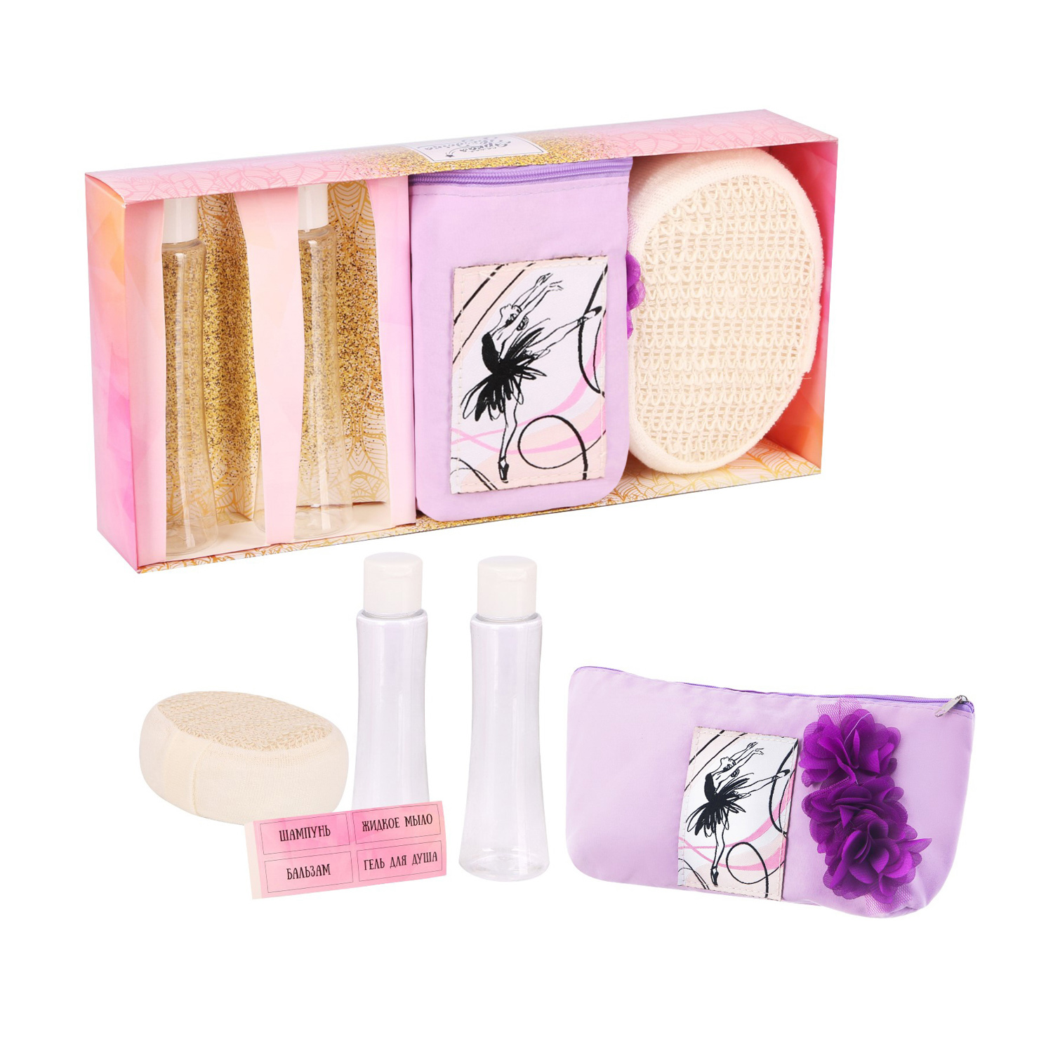 яяяНабор косметичка+мочалка+2 бутылочки "Яркая звездочка" 2494988