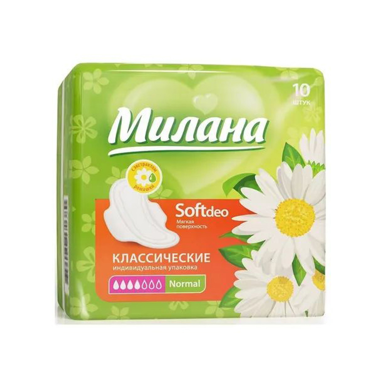 яяяПрокладки МИЛАНА Классик софт нормал.ДЕО 10шт Оранж/Зеленые Ромашка *35