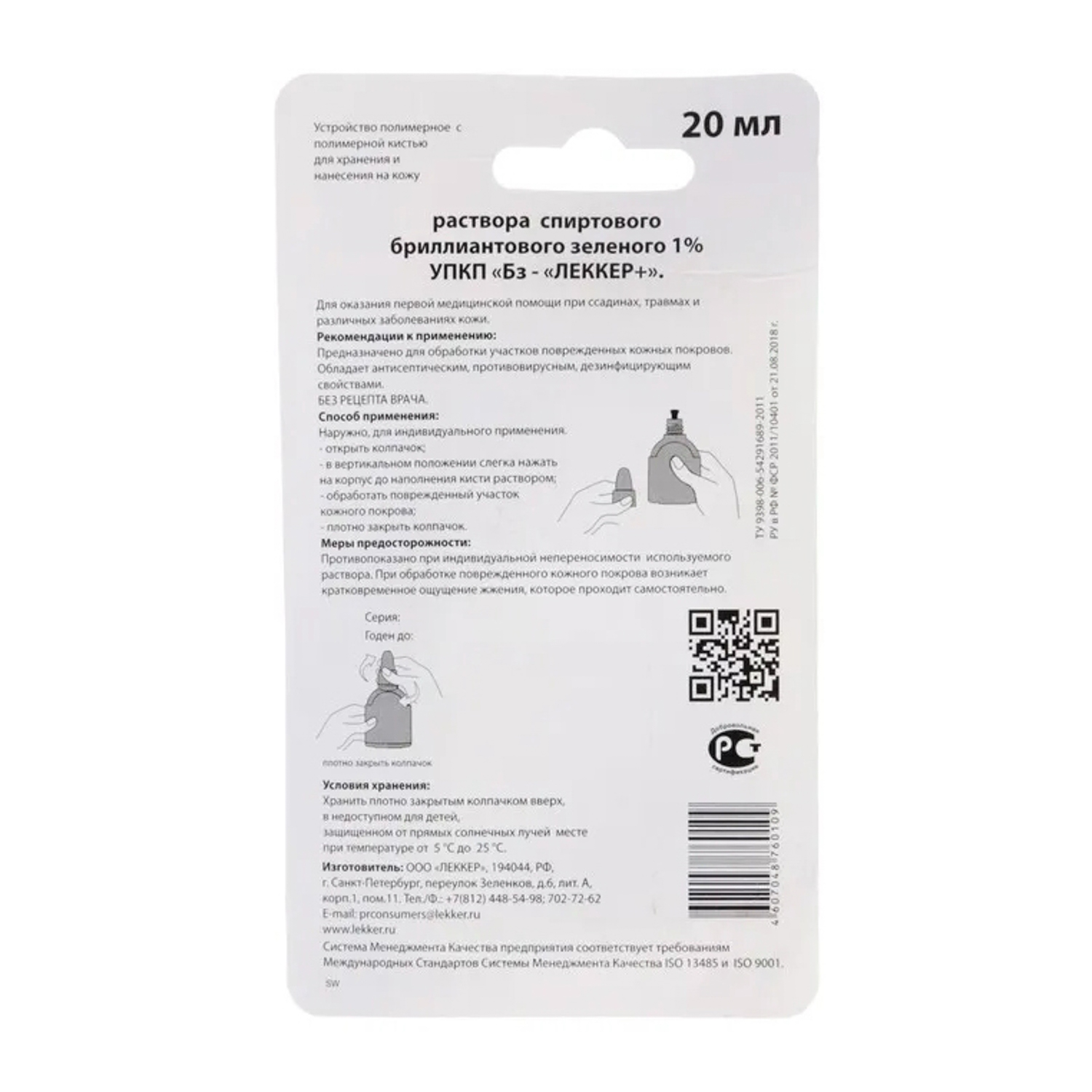 Зеленка Lekker Бриллиантовый зелёный 1%, 20 мл. 1158087