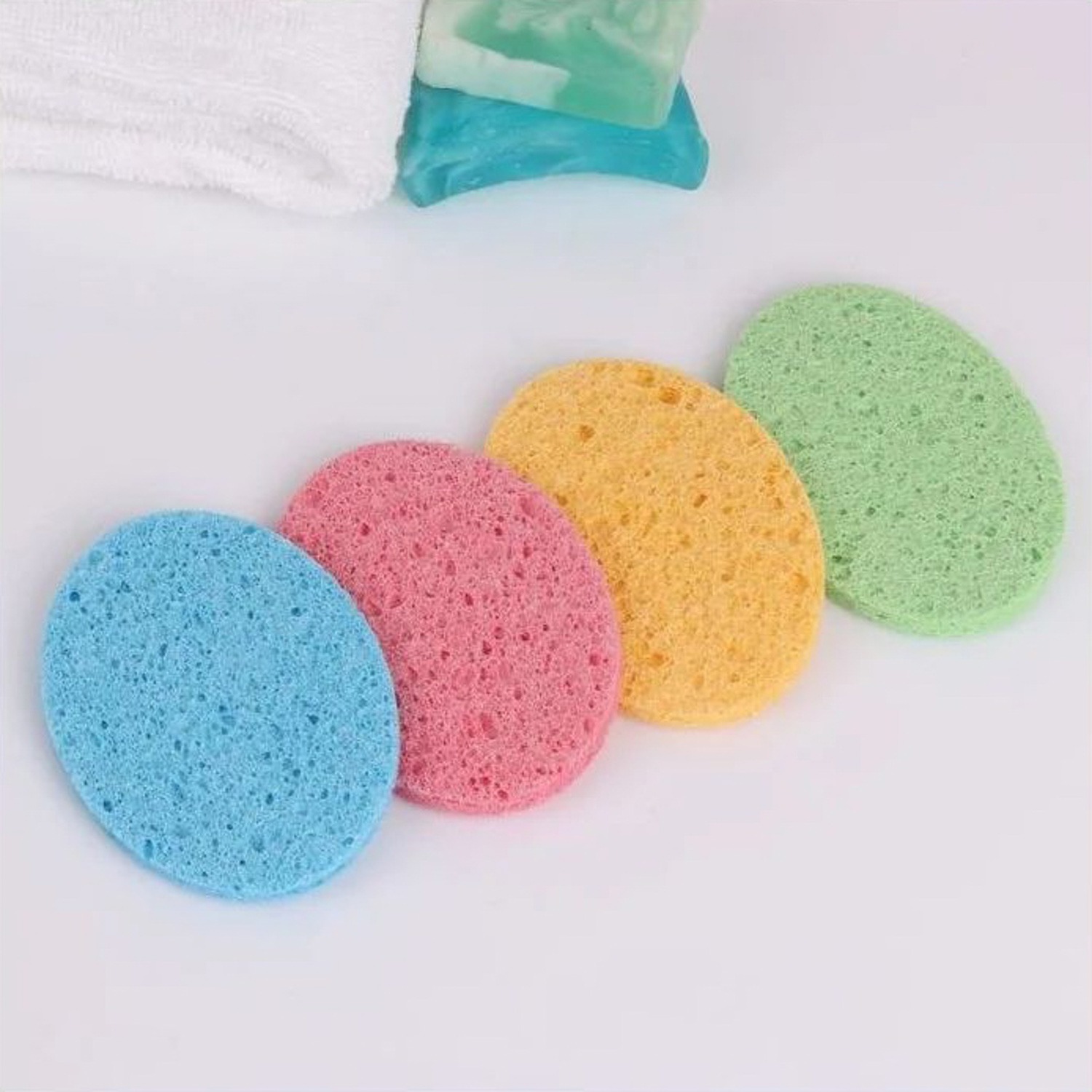 яяяСпонж д/умывания целлюлоза Овал 11*8*0,8см влажн МИКС пакет QF 443007