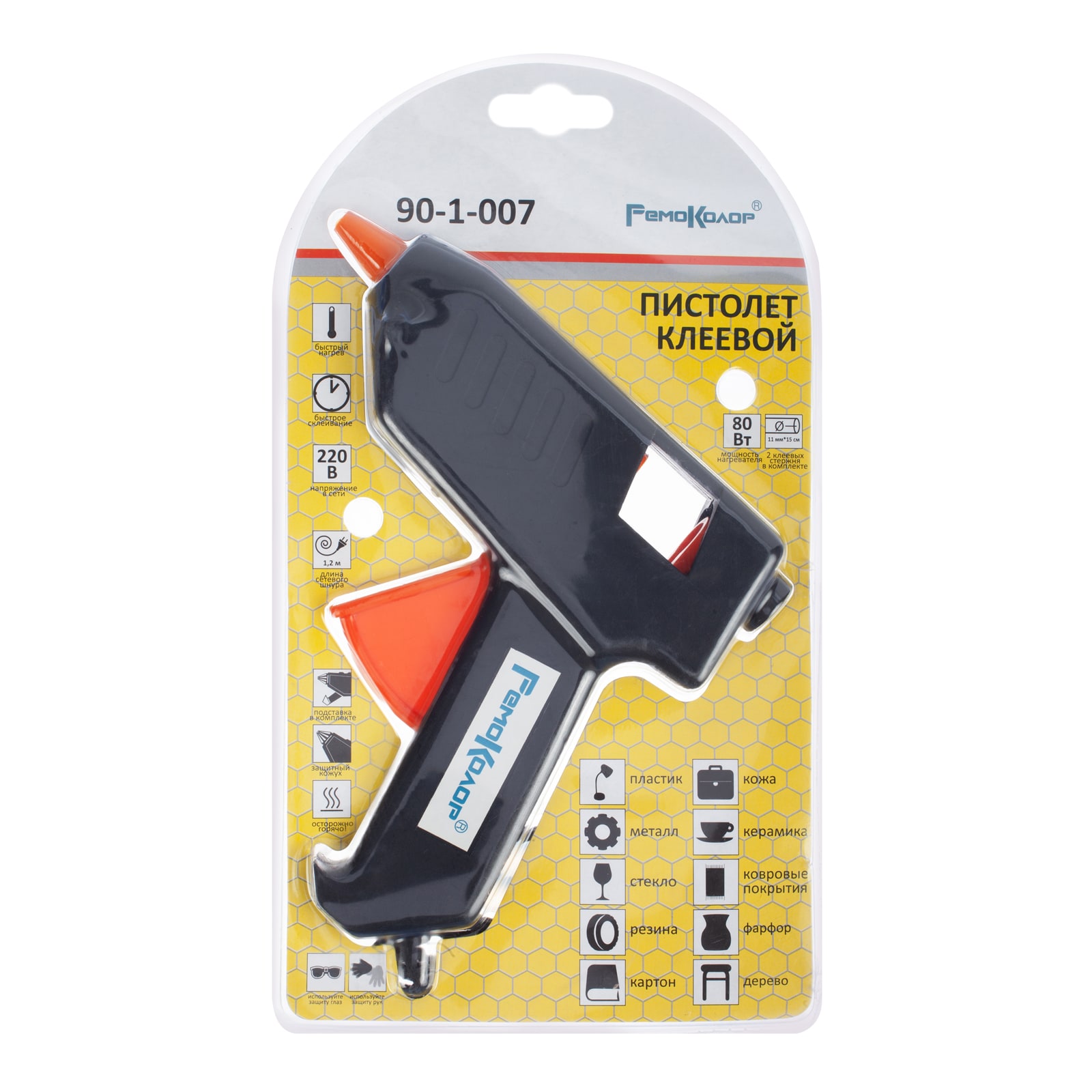 Пистолет клеевой 80Вт стержень d-11мм (2 шт.в компл.) 220В арт.90-1-007 Ремоколор *1/10/40
