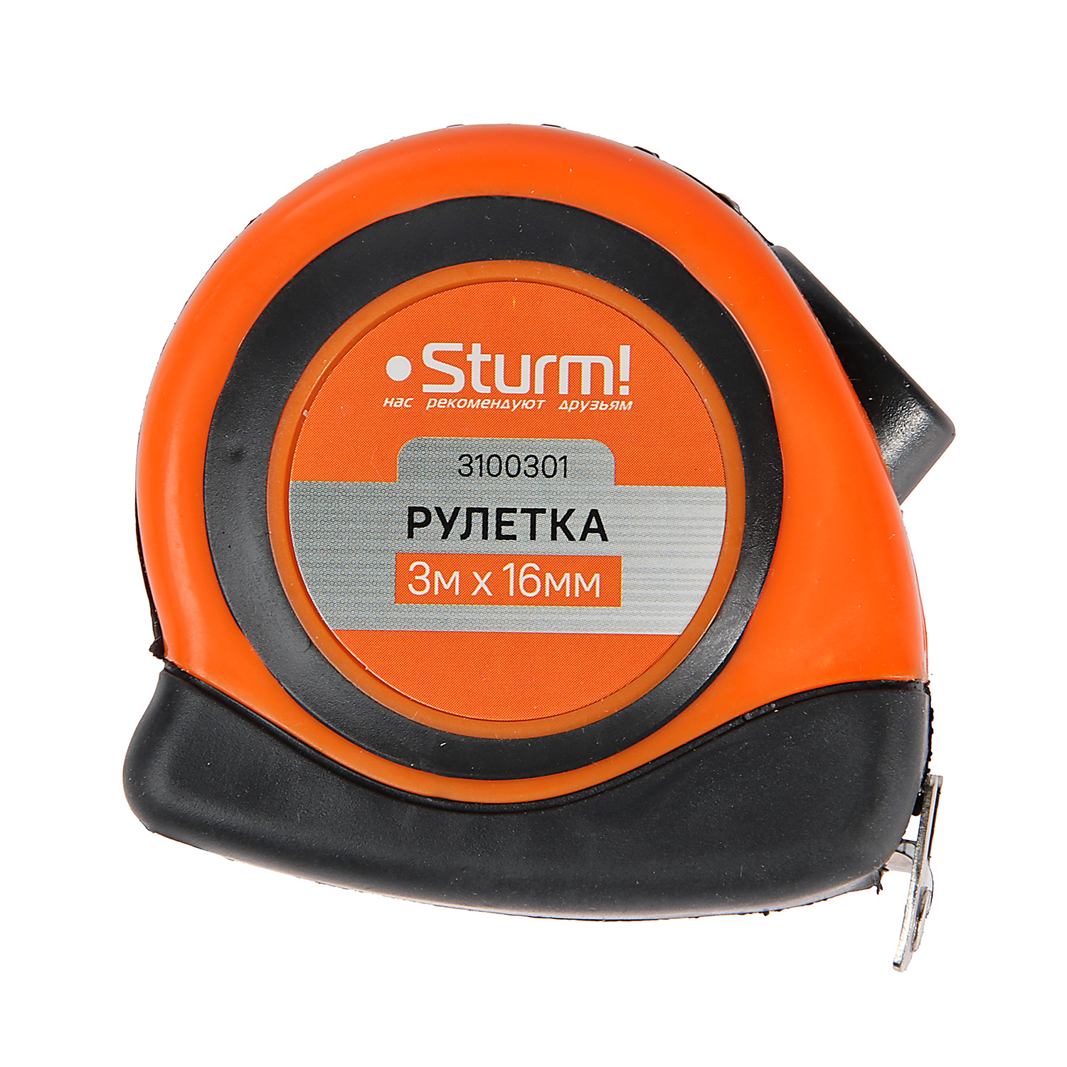 Рулетка 3м х16мм резино-пластик. корпус стальная лента автостоп магнит арт.3100301 STURM *1/12/120