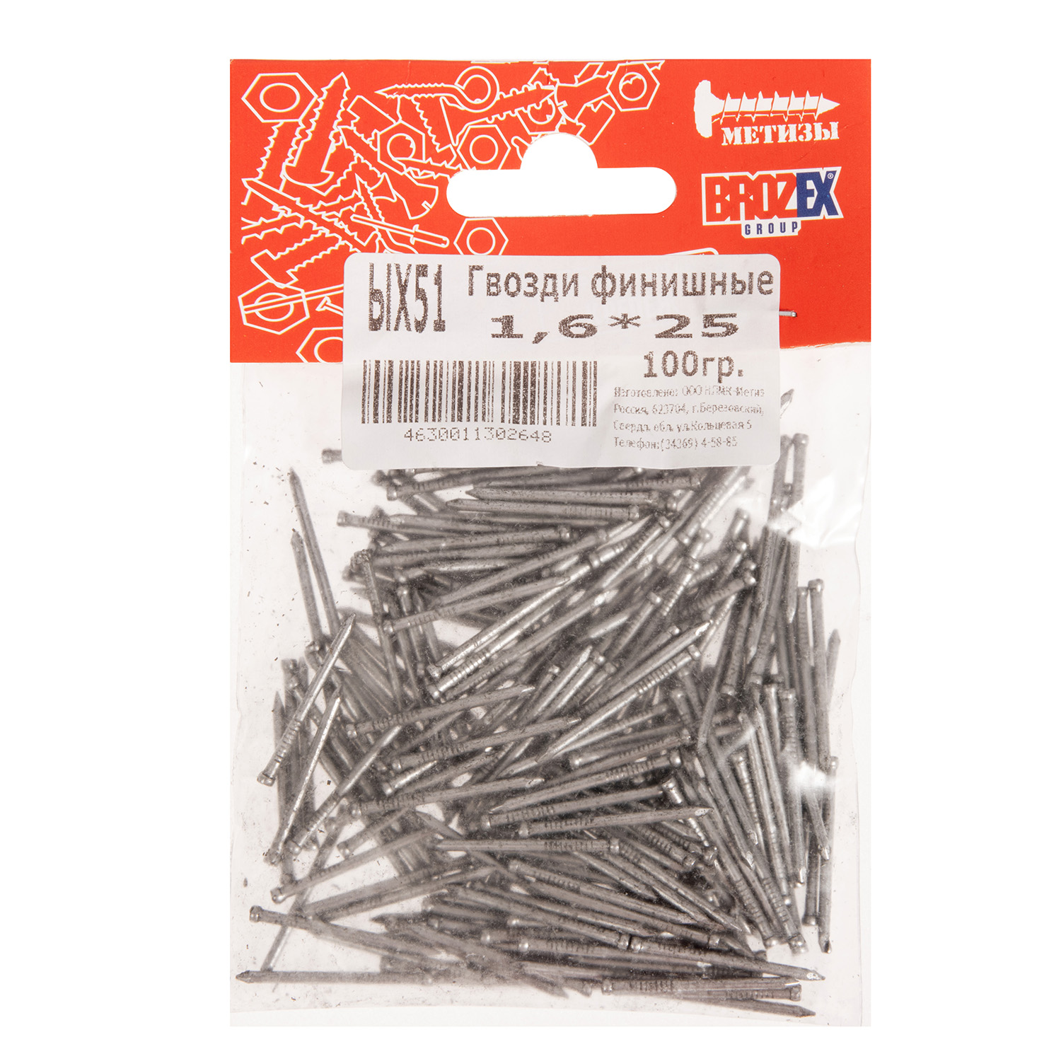 Гвозди финишные 1.6х25 мм BROZEX, 0.1 кг
