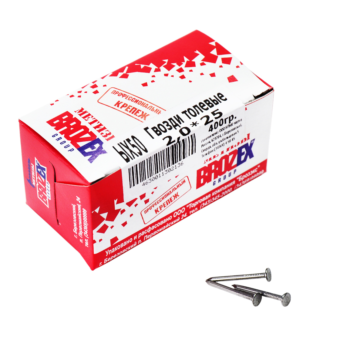 Гвозди толевые 2х25 мм BROZEX, 0.4 кг
