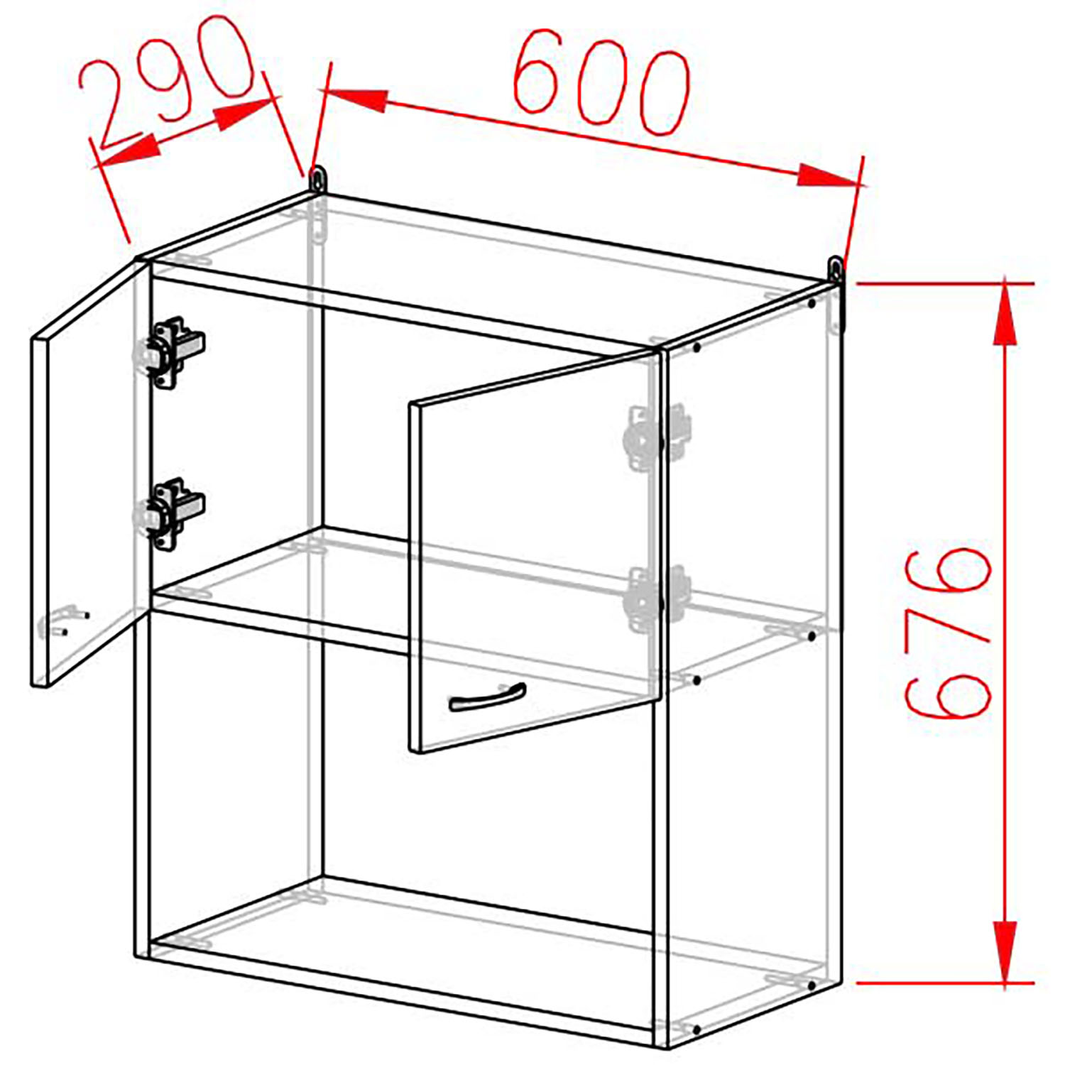 Шкаф навесной 600х676х290 мм BROZEX-WOOD Camellia, с двумя дверцами, серый / юта