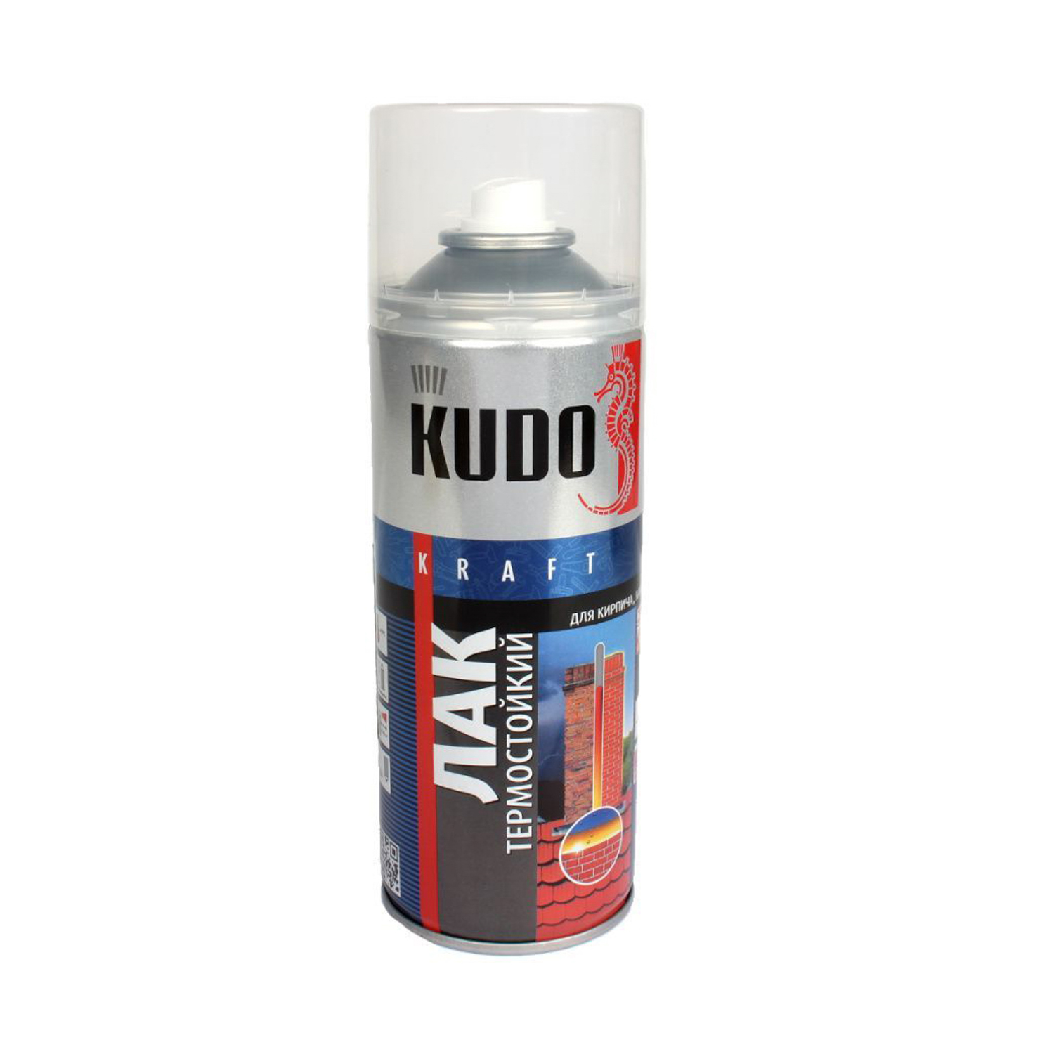 Лак-аэрозоль акриловый бесцветный глянцевый термостойкий 520/270 мл KUDO *1/6