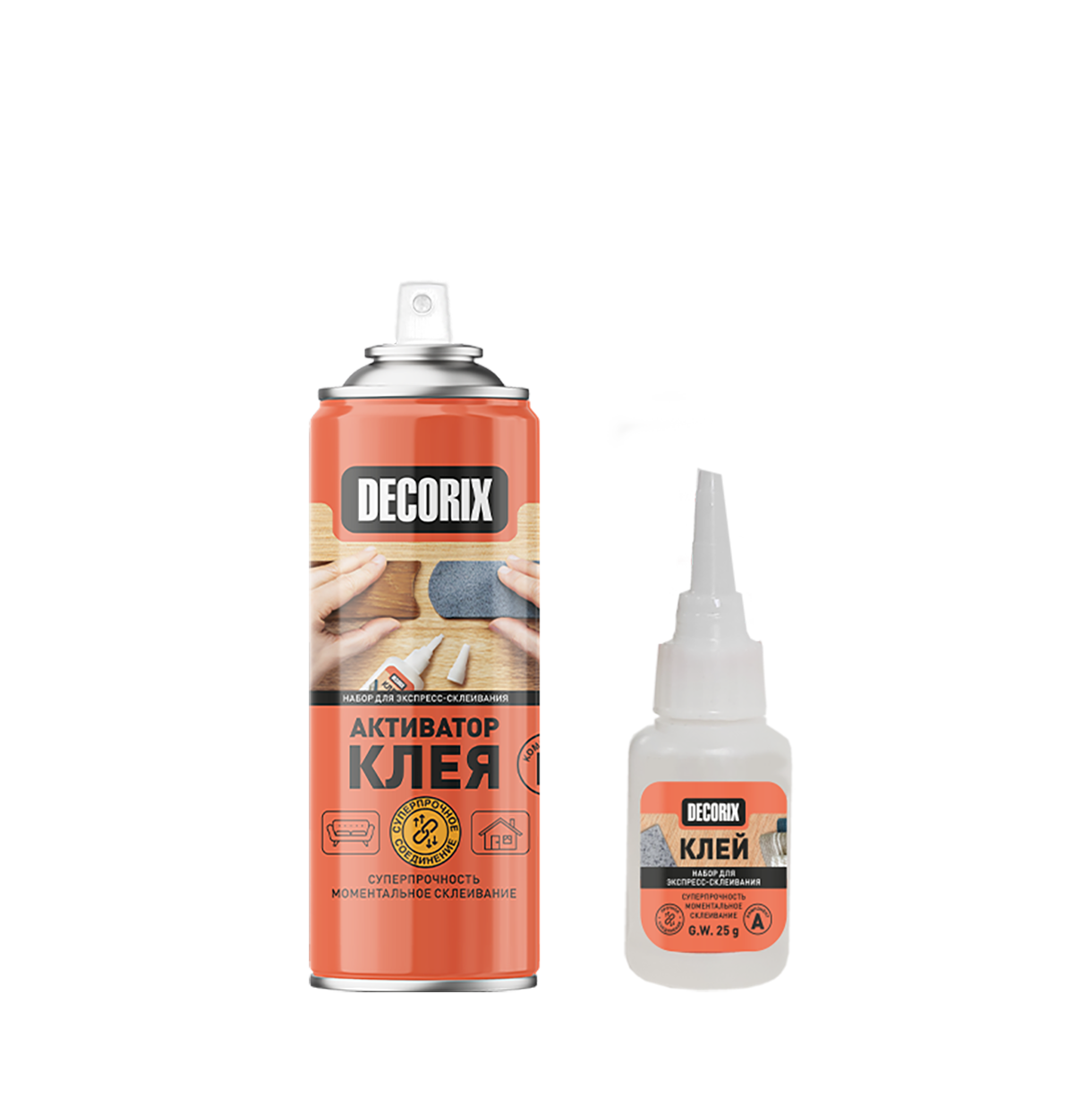Клей двухкомпонентный для экспресс-склеивания DECORIX (активатор 140 мл+клей 25 г) *1/72