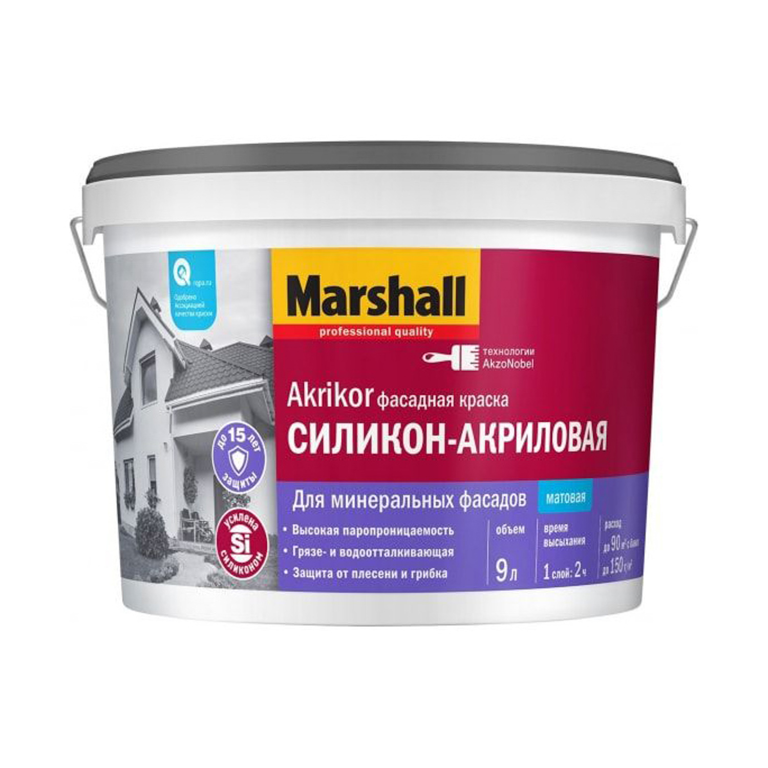 Краска акриловая фасадная 9 л Marshall AKRIKOR База ВW *1