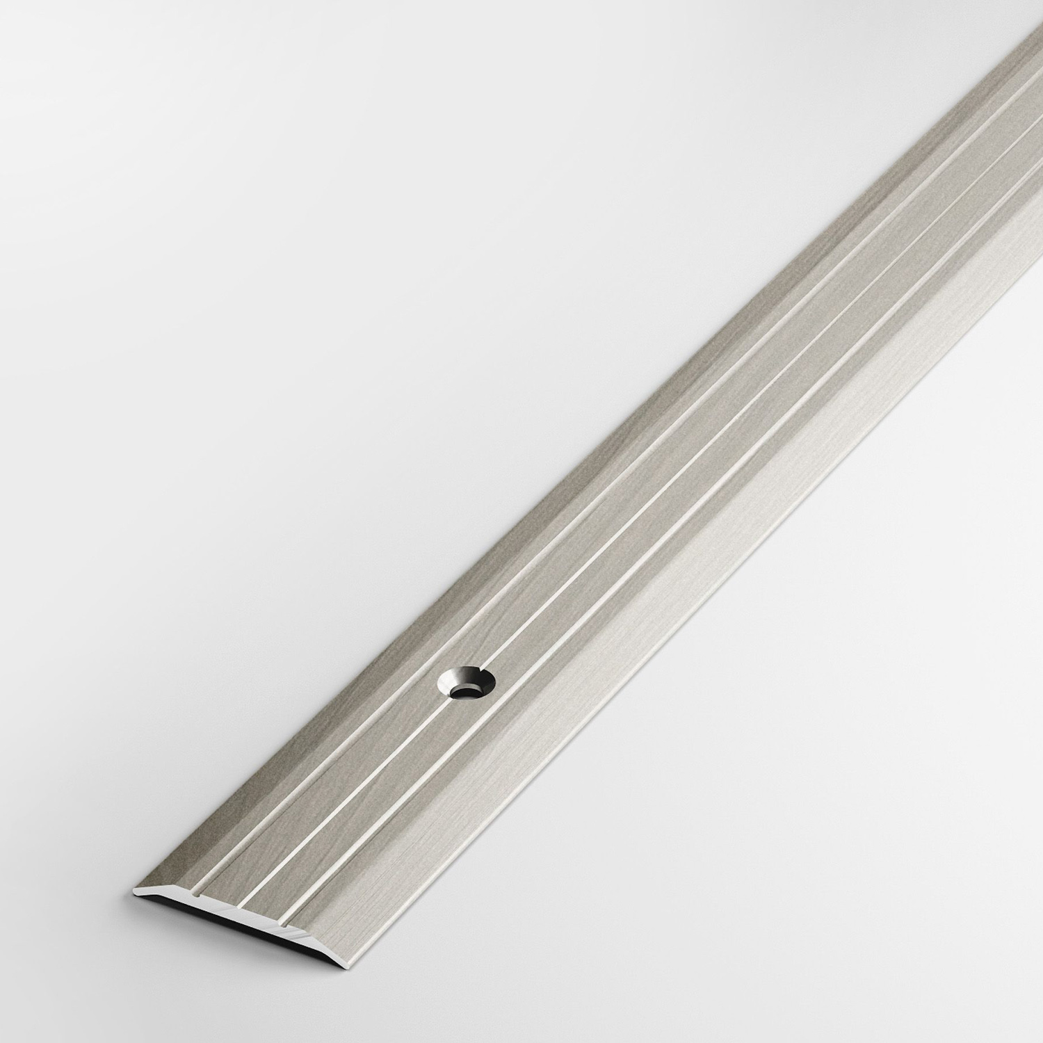 штПорог-стык 25х1800 мм Лука ПС 01, ель дымчатая 052 — плоский алюминиевый профиль с двумя желобками для оформления перехода между поверхностями, расположенными на одном уровне. Выполняет декоративную и защитную функции: придает полам завершенный вид, предохраняет кромку ламината, плитки, линолеума и прочих материалов от различных повреждений, не пропускает в стык грязь. Порог имеет открытое крепление. Поставляется в индивидуальной упаковке, с саморезами и дюбелями в комплекте.
