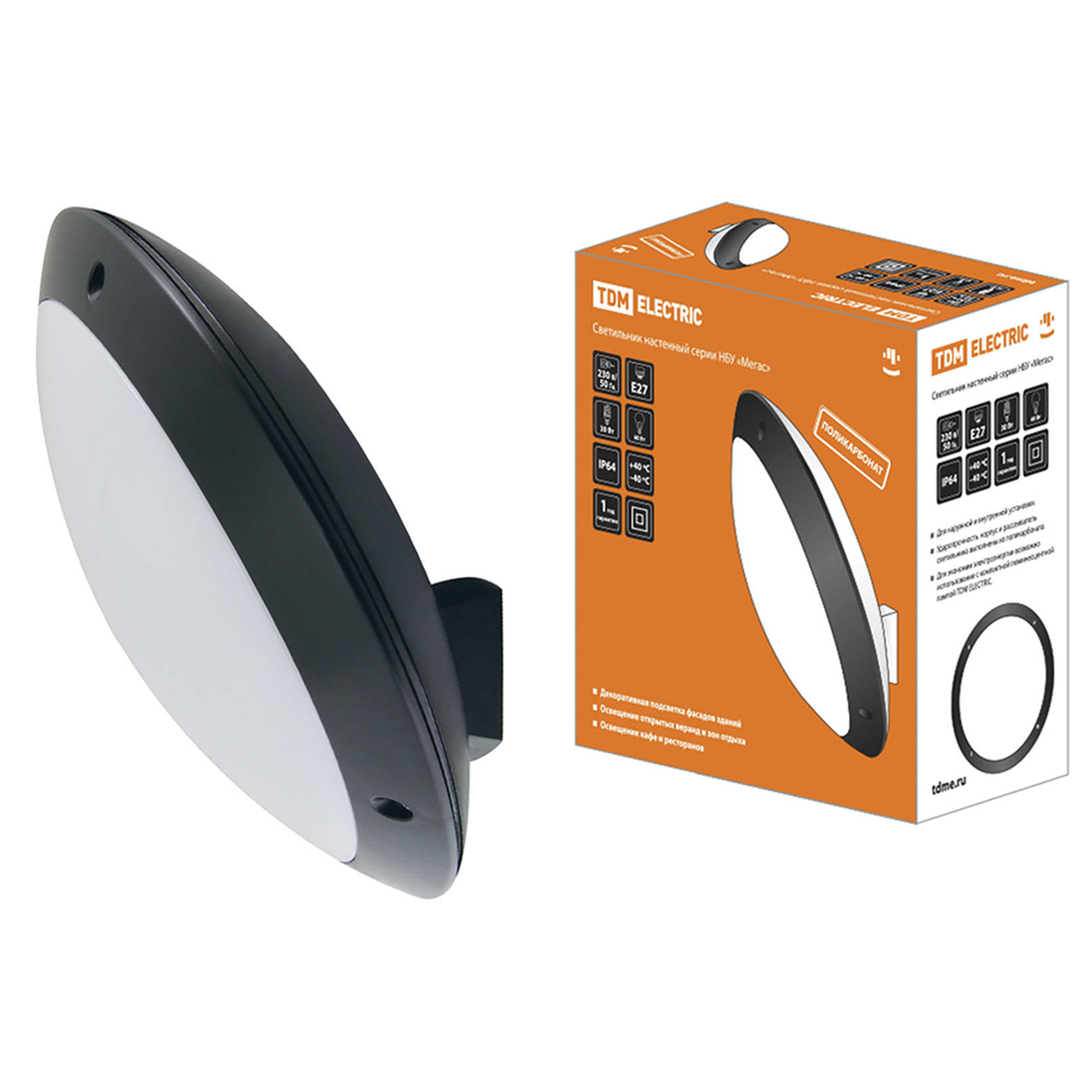 Светильник НБУ 05-60-006 "Мегас" черный Е27 (макс. лон 60Вт) IP64 TDM  SQ0328-0306 *1/5