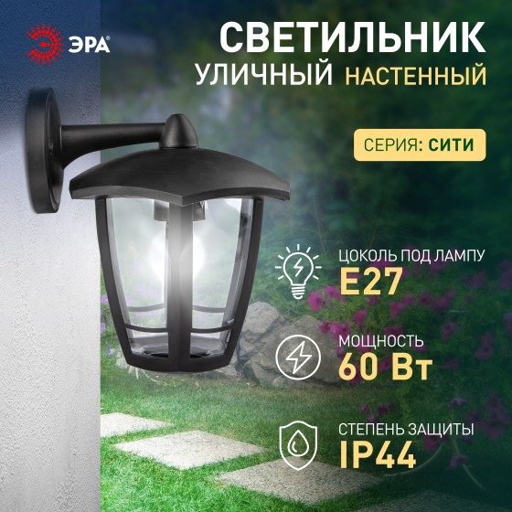 Светильник садово-парковый НБУ "Дели 3" Е27 шестигранный настенный черный ЭРА Б0051188 *1/8