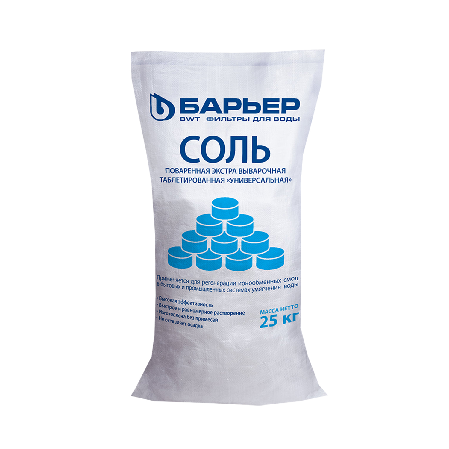 СОЛЬ ПОВАРЕННАЯ ЭКСТРА ВЫВАРОЧНАЯ ТАБЛЕТИРОВАННАЯ «УНИВЕРСАЛЬНАЯ», мешок 25 кг