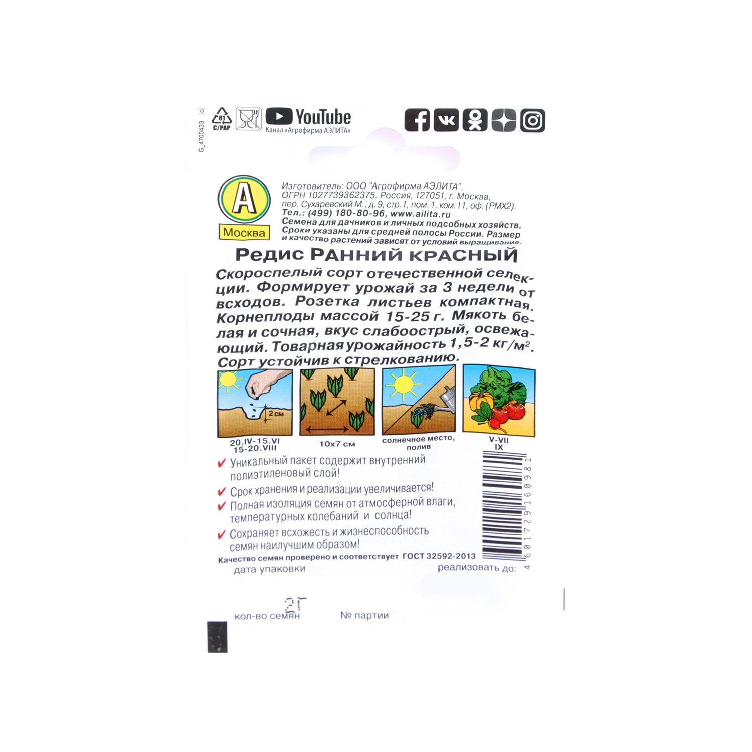 Семена Редис Ранний красный 2гр Аэлита Лидер *10/500