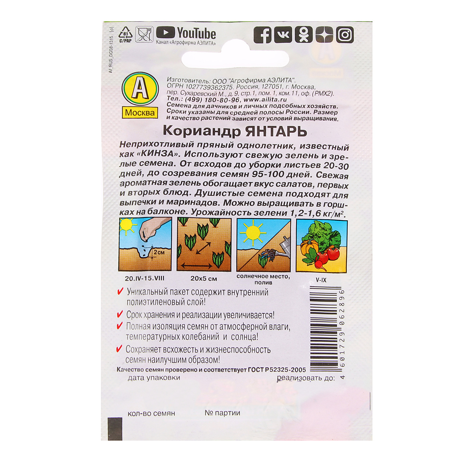 Кориандр Янтарь 3гр Аэлита Лидер *10