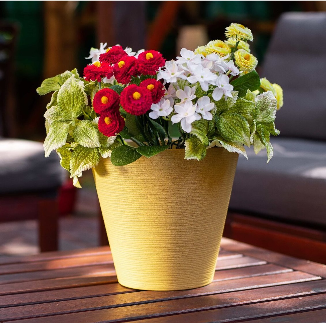 Кашпо пластм. "Конус Эко" 5,2л d верха225мм h205мм,съем дрен.решетка Горчичный "5plast.ru" *1/9