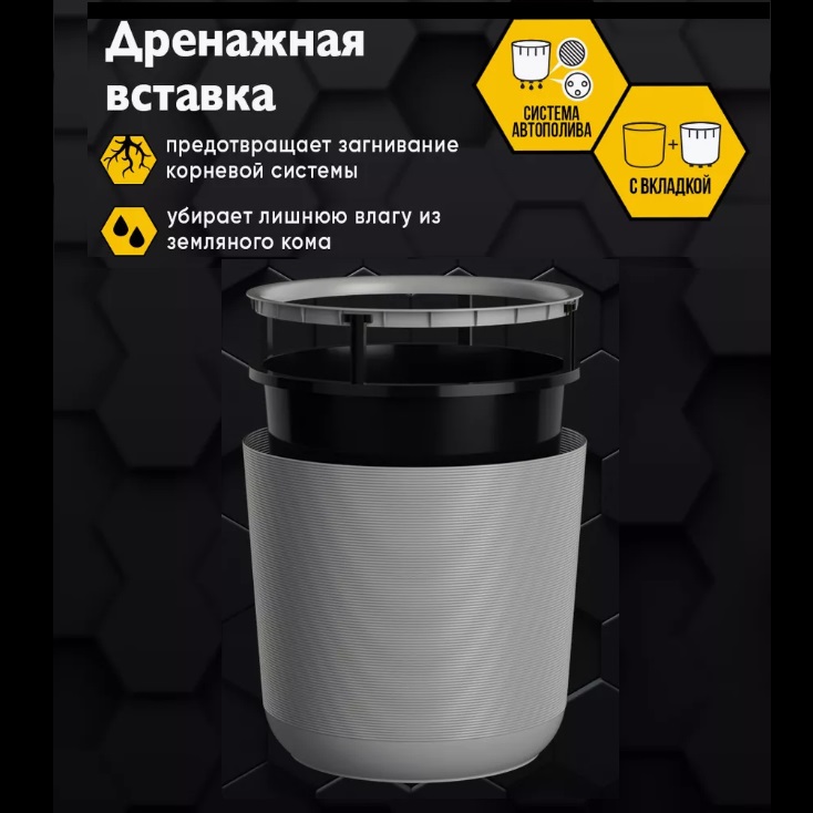 Кашпо пластм. "Лион" 16,6л d верха 300мм h300мм со вставкой 14,5л Серый муссон ЛИ30-70*1
