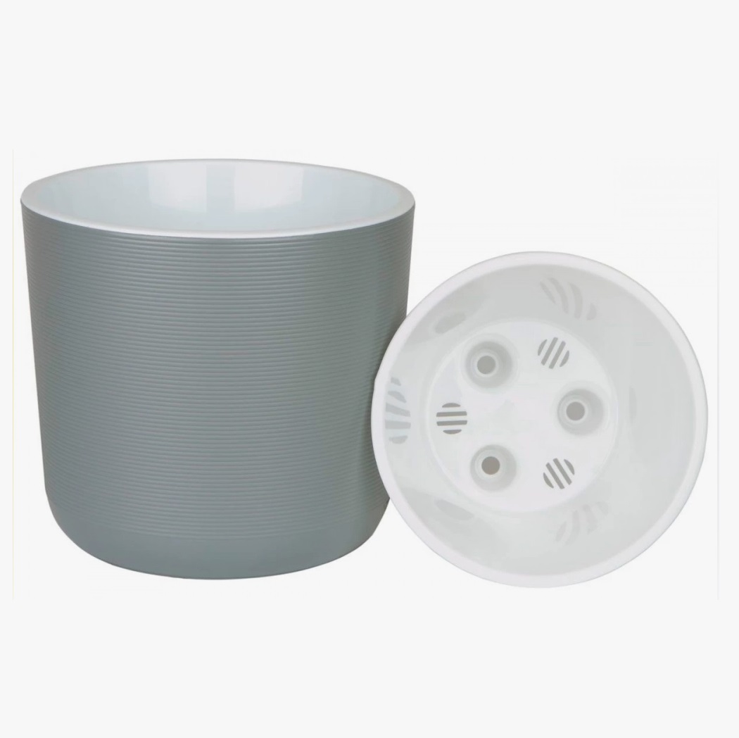 Кашпо пластм. "Лион" 4.2л d верха 190мм h175мм со вставкой Серый муссон ЛИ19-21 *1/8