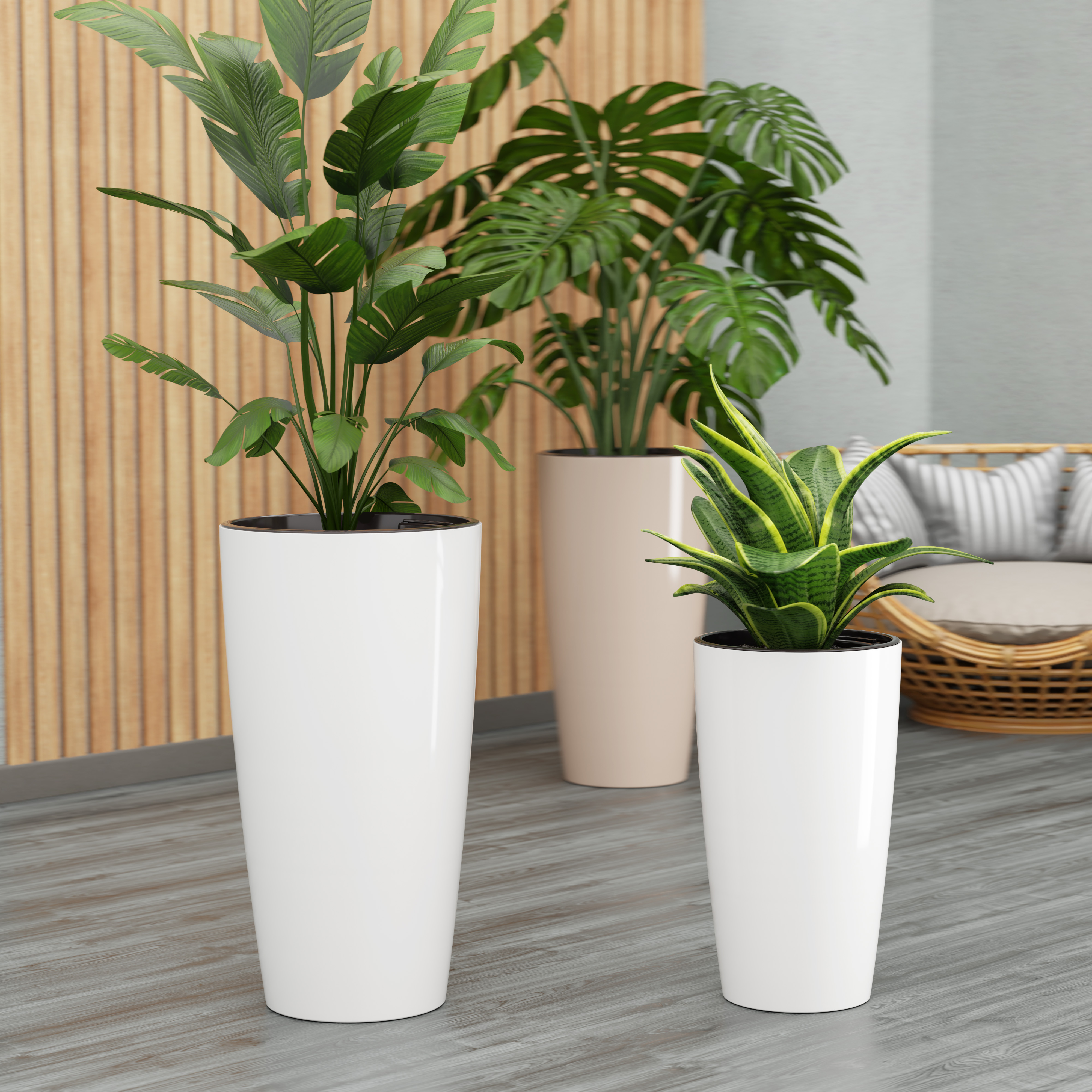 Кашпо пластм. "Рондо" высокое 35л d 320мм h565мм, со вставкой 15л Белый М8879 (ЗПИ "Альт.") *1