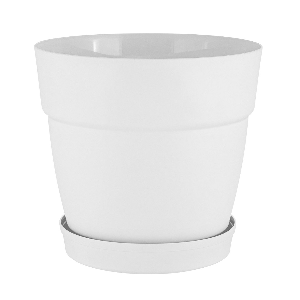 Кашпо пластм. "Villa de Fiori" 20л d верха 360мм h330мм с поддоном Колёса Белоснеж. IG660410048*1/6