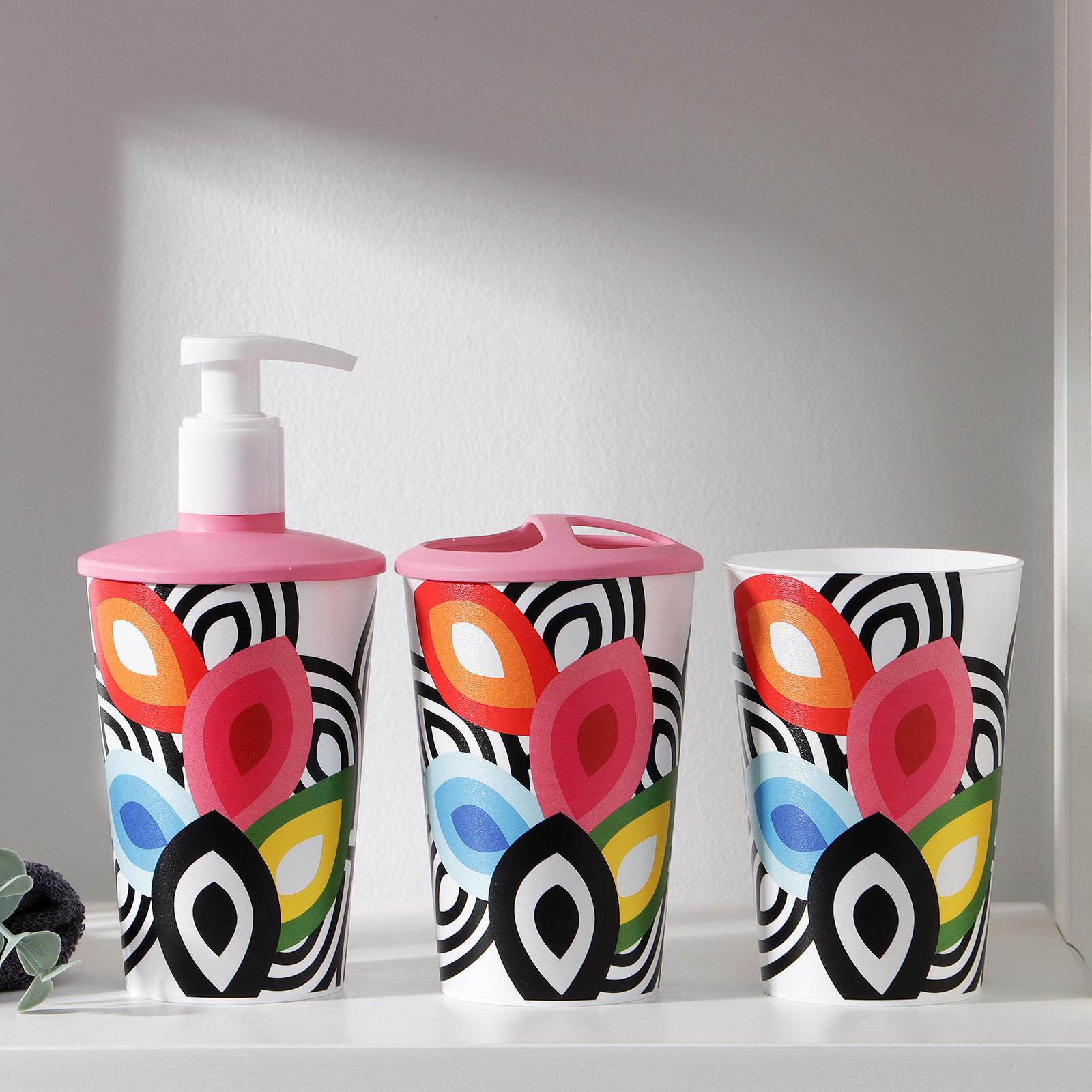 Набор для ванной комнаты 3 предмета: подставка для зубных щеток, стакан, дозатор, цвет МИКС 696320
