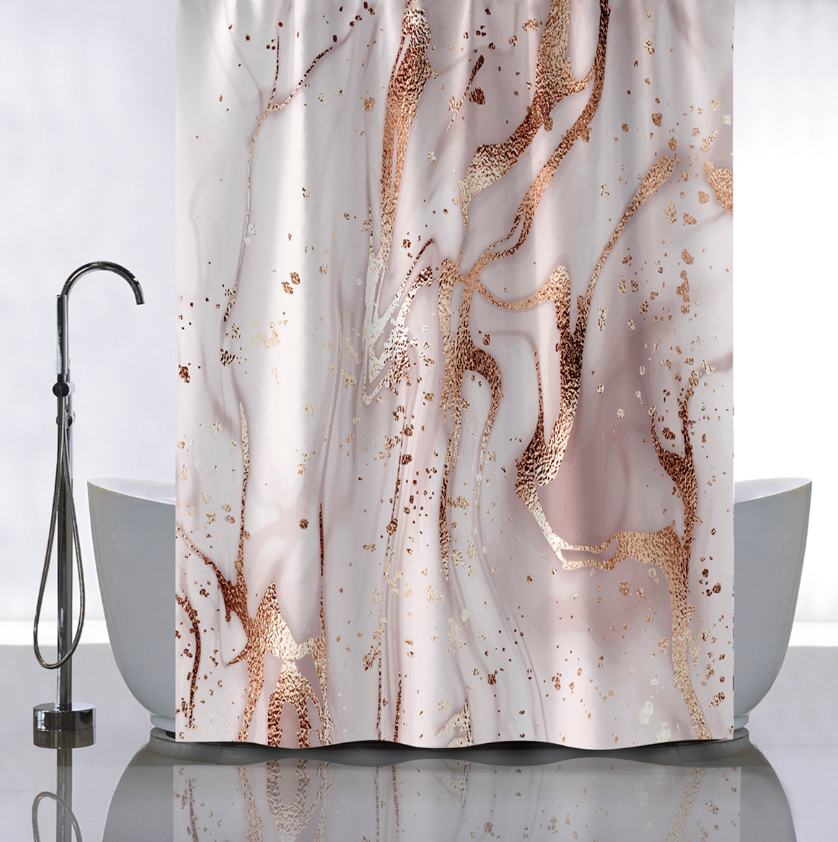Штора  для ванной "Санакс" п/эстер 180*180см "Бежевый мрамор с золотом"  без колец 01-110 *1/24