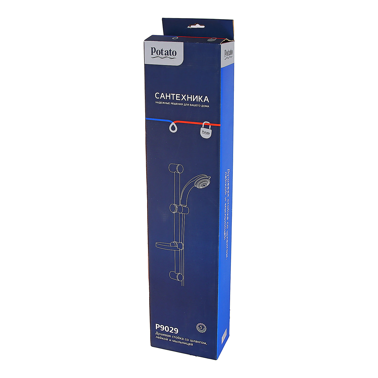 Стойка для душа Potato P9029, 1 лейка, шланг, мыльница