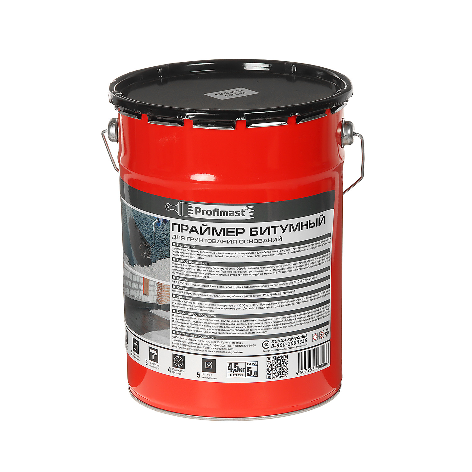 Праймер битумный Profimast совместим с большинством битумных и битумно-полимерных материалов, обладает малым временем высыхания, высокой проникающей способностью, эффективно пропитывает и связывает пыльные загрязнения. Не содержит толуола и других токсичных растворителей.
