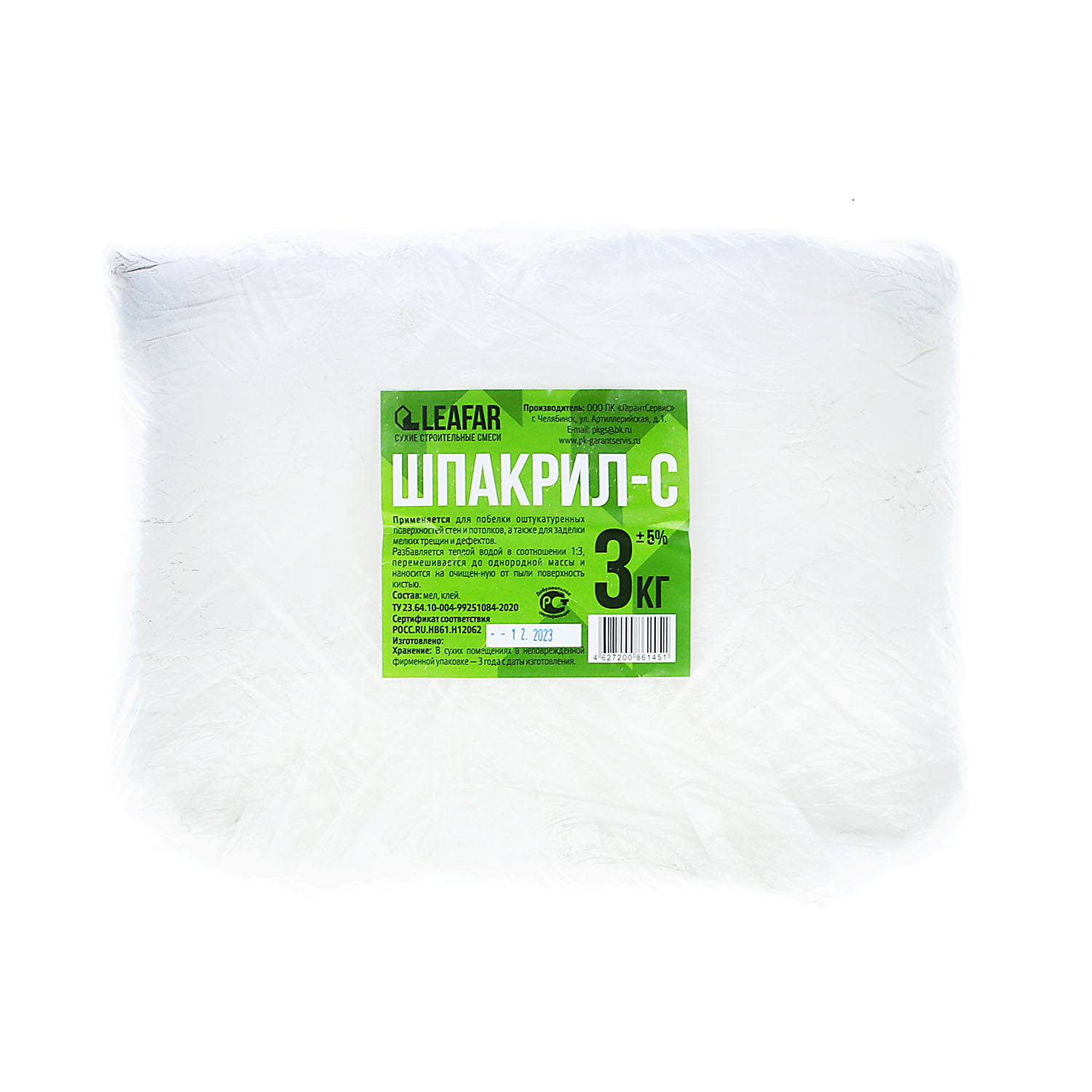 Сухой порошок для разведения водой. Шпакрил разбавляется теплой водой в соотношении 1:3, перемешивается до однородной массы и наносится на очищенную от пыли поверхность кистью. Предназначен для побелки оштукатуренных поверхностей стен и потолков, а также для заделки мелких трещин и дефектов.
