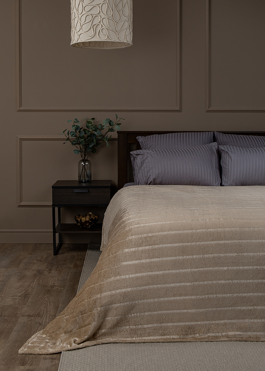Плед 150*200см фланель однотонный страйп коричнево-бежевый TF FNS BE-GY1 1520 16-1320 Absolute *1