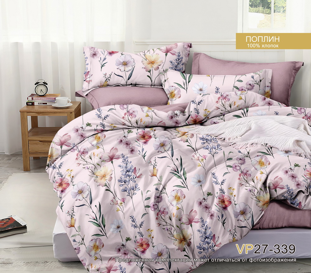 Постельное белье 1,5сп поплин на резинке Орхидея VP27-339, наволочки 70*70 - 2шт *1/4