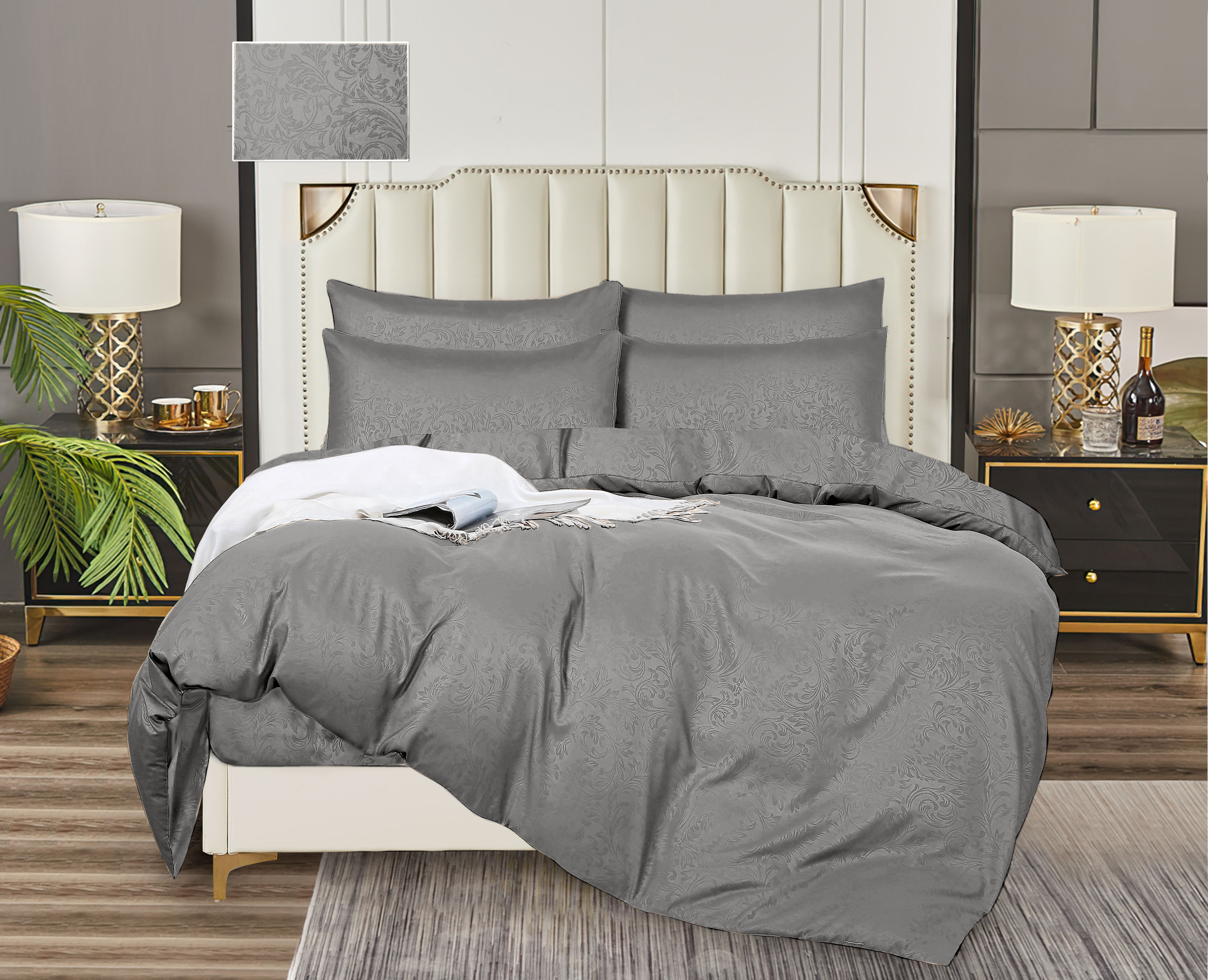 Постельное белье 2сп бамбук жаккрад Орхидея серый 16-3850, наволочки 70*70см - 2шт *1