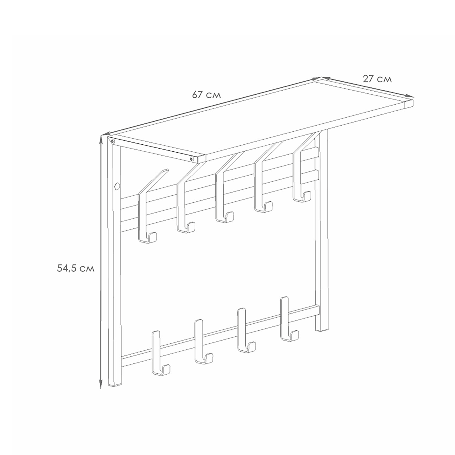 Вешалка настенная с полкой 2-х ярусная 670х270х545мм "Торонто 22Д" Белая ВСПТ22Д Б ("ЗМИ") *1