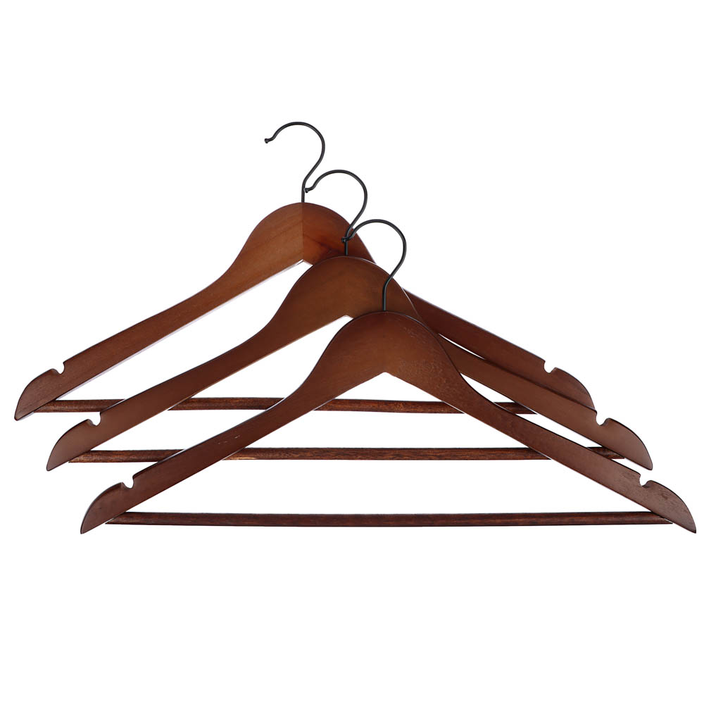 яяяПлечики-вешалка для одежды дерев. НАБОР 3шт 45см Коричн. (арт.455-060) *1/32