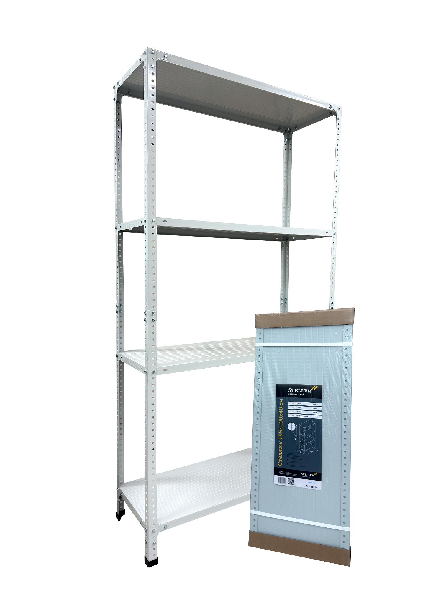 Стеллаж металл. "Steller" выс.1,95м, шир.1,0м, гл.0,4м, 4полки (мах нагр.на полку 100кг), Серый *1