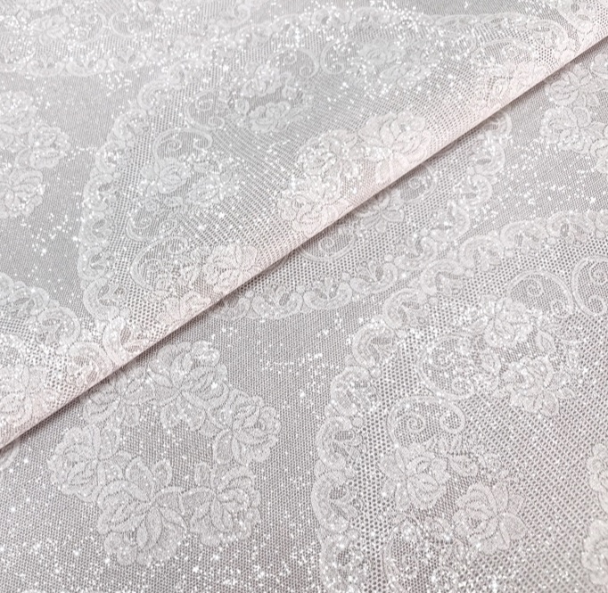 Клеёнка на тканевой основе "Shine" "Кружевные салфетки" серый фон шир.1,37м GW-21708 "Great Way" *20