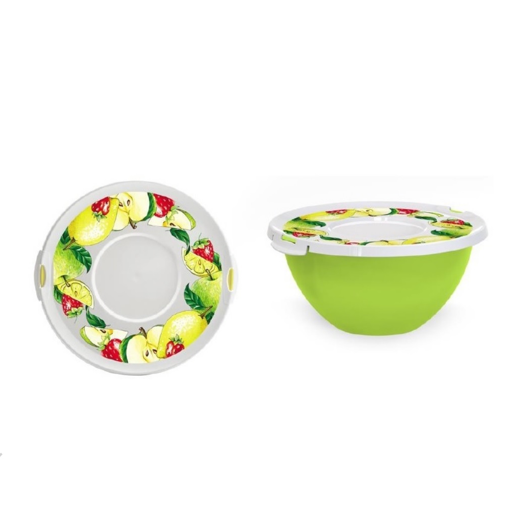 Миска пластм. с крышкой 2,0л д.236мм декор на крышке арт.35602 ("Полимербыт)*1/18