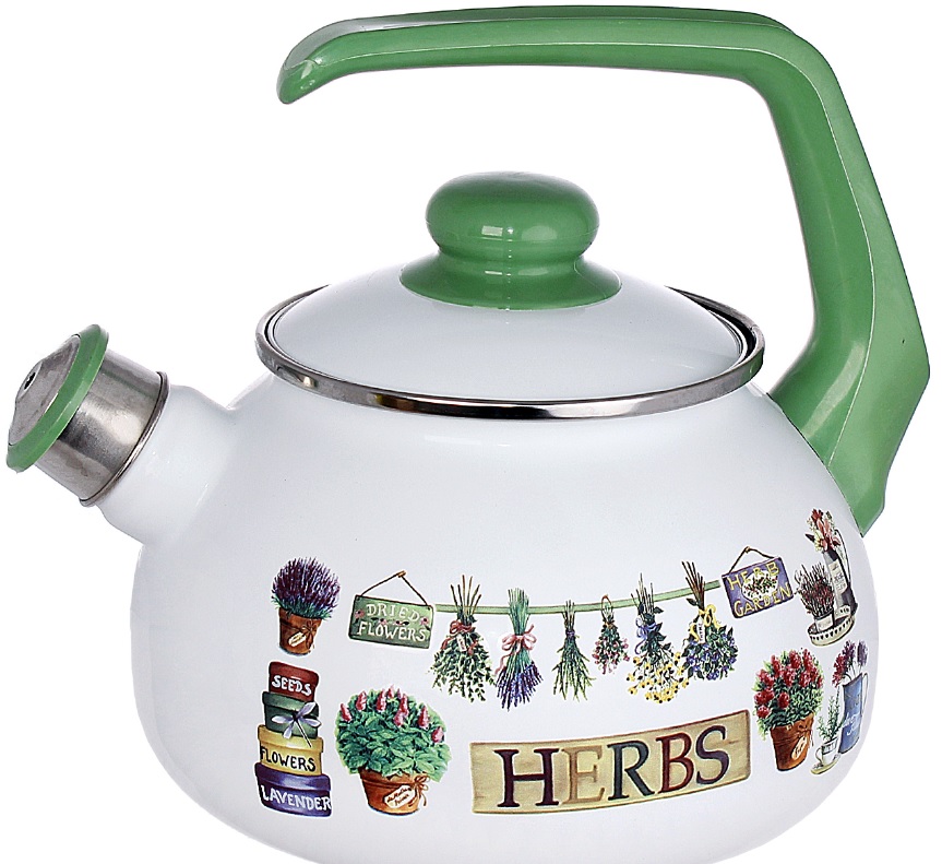 Чайник эмалир.со свистком 2,5л "Травы" 2594 (Сербия) *1/6
