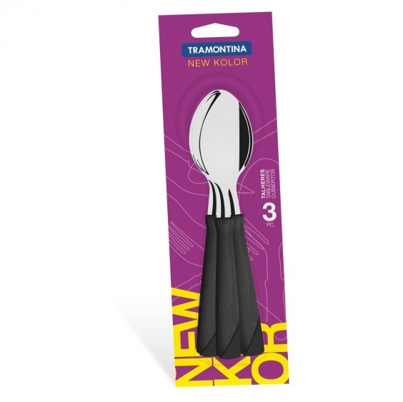 Набор столовых приборов нерж.-ложки столовые 3шт TRAMONTINA NewKolor пл.р.Черн.23163/300-TR *1/12