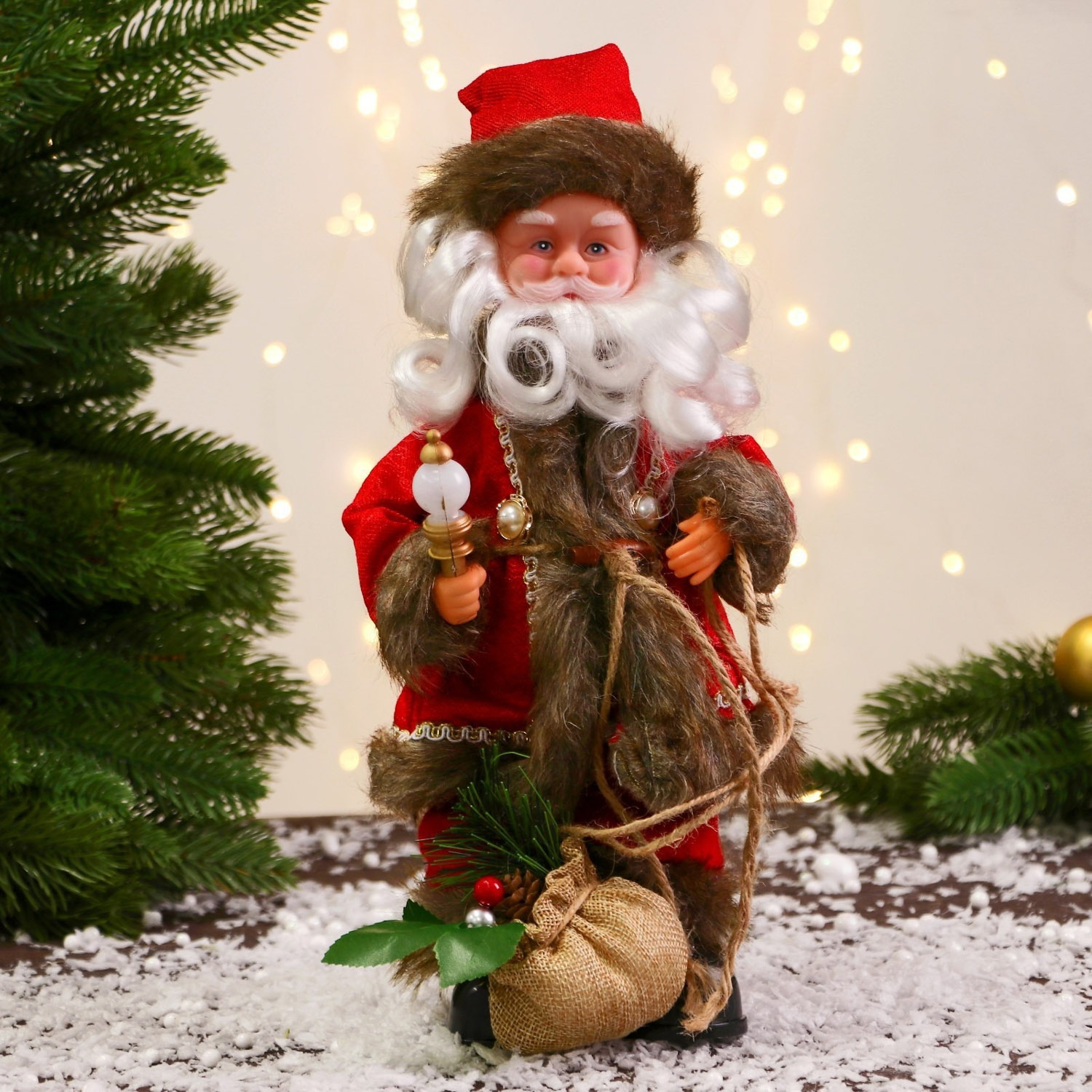 Дед Мороз "В кафтане с пуговицами и с мешком" 30 см, двигается, красно-коричневый 7856738