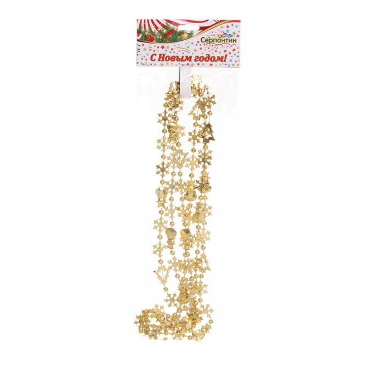 Бусы на елку Серпантин «Новый год», 200 см, золото