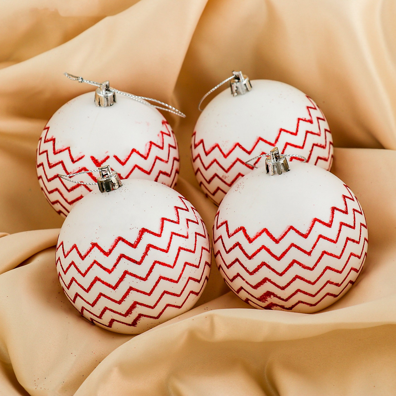 Набор шаров пластик d-8 см, 4 шт "Красные линии" белый 3276594
