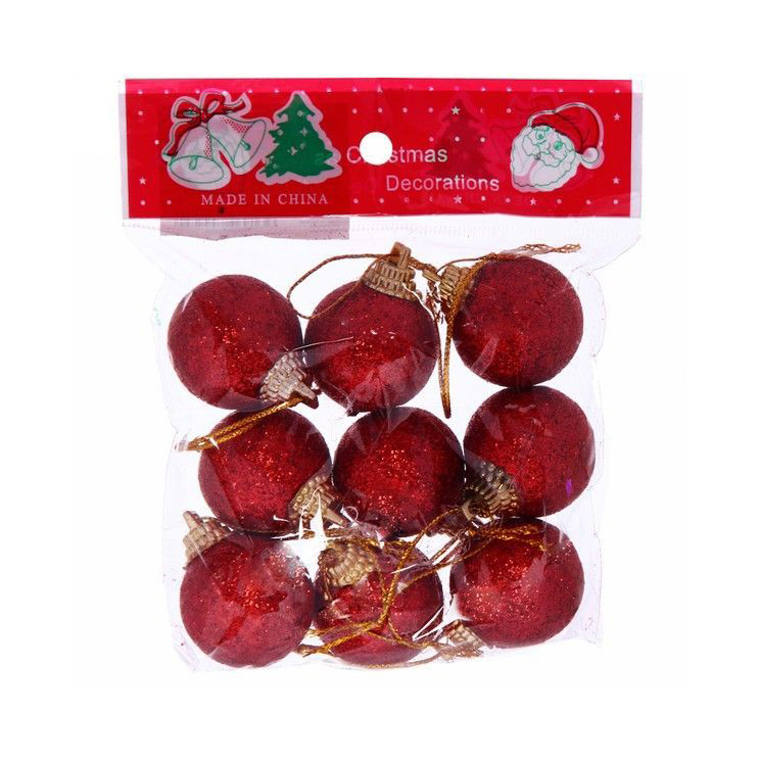 Новогодние шары 3 см "Посыпка из блёсток" набор 9 шт, красный