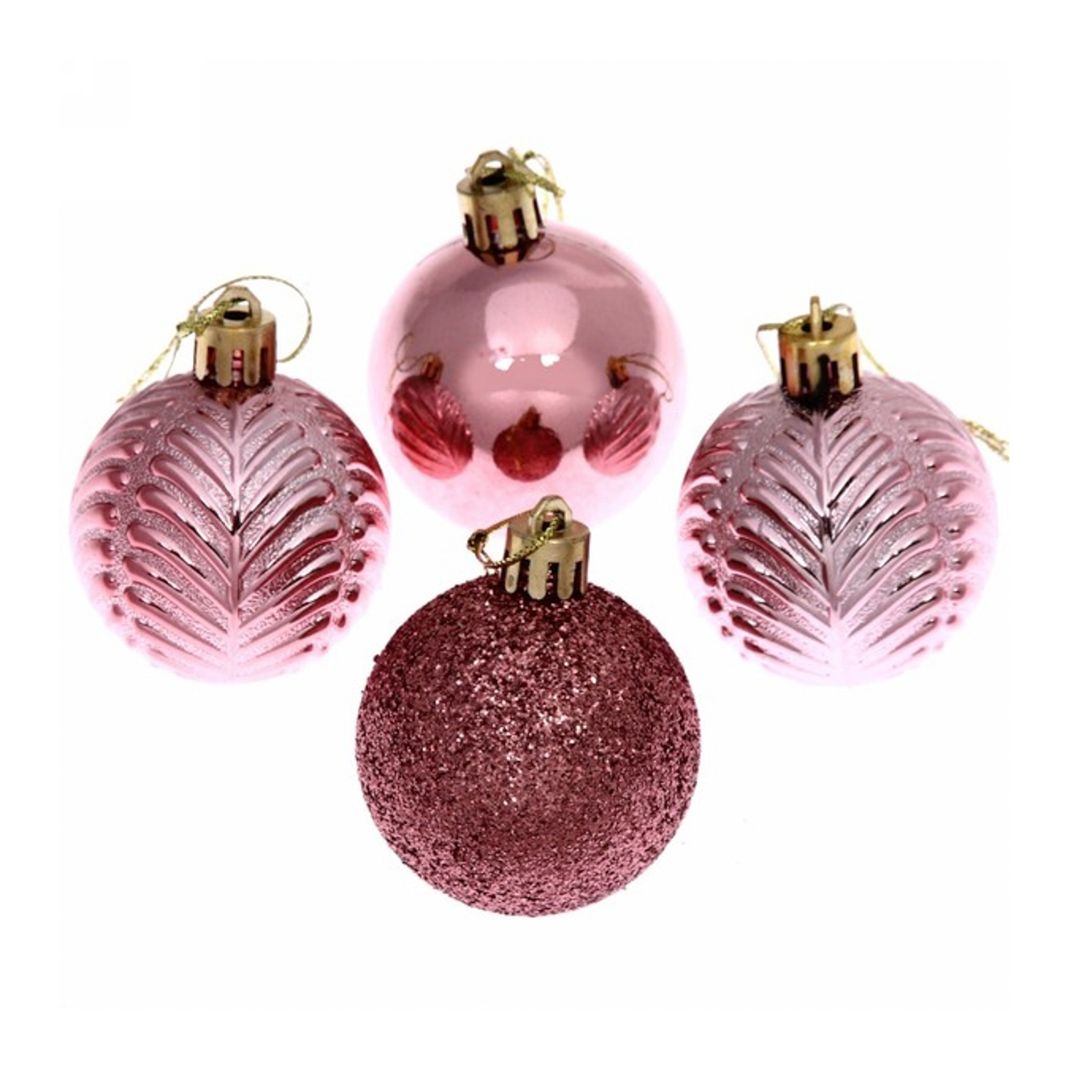 Новогодние шары 5 см (набор 4 шт) "Микс фактур", розовое золото